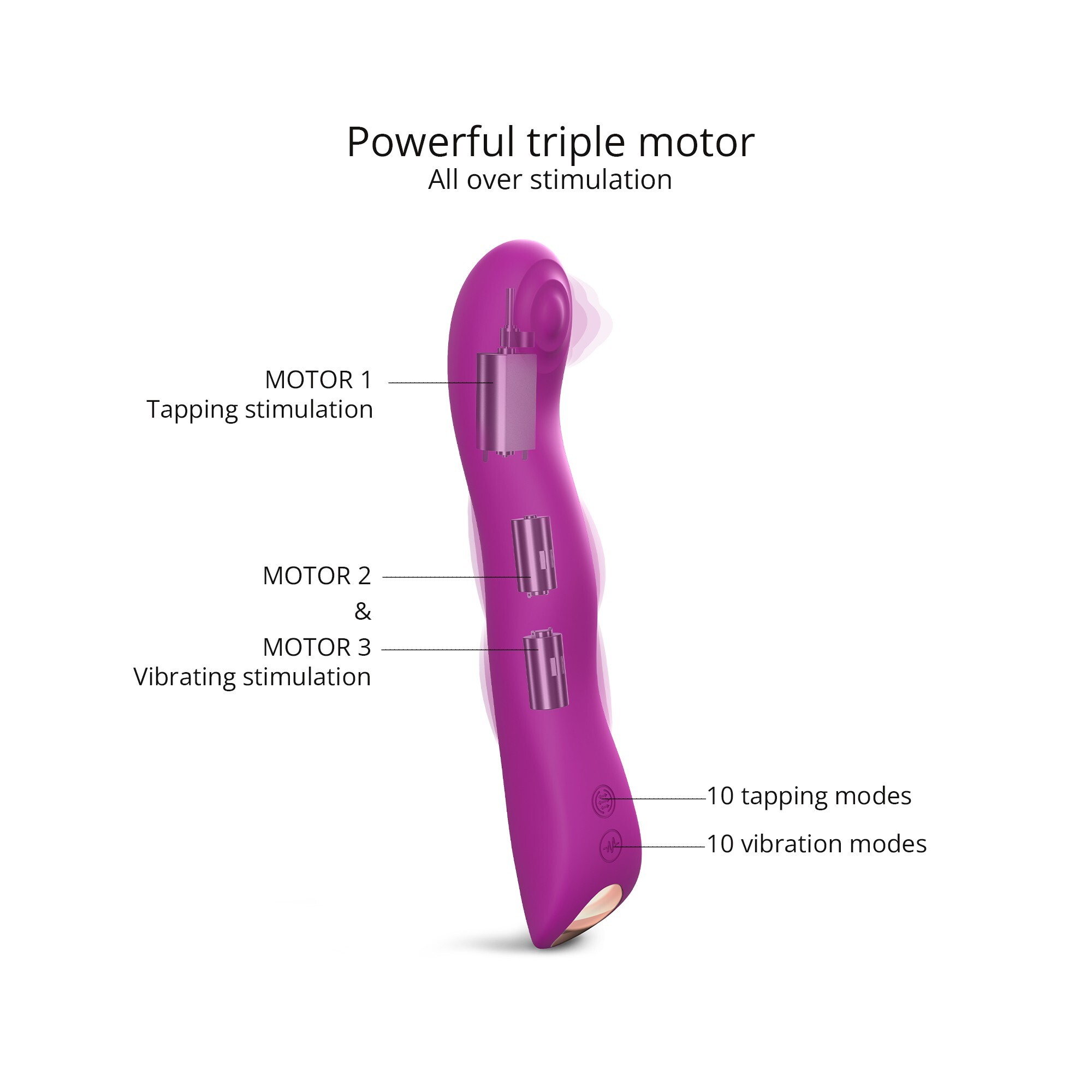 - 10 режимов постукивания + 10 режимов вибрации = 20 вариантов наслаждения