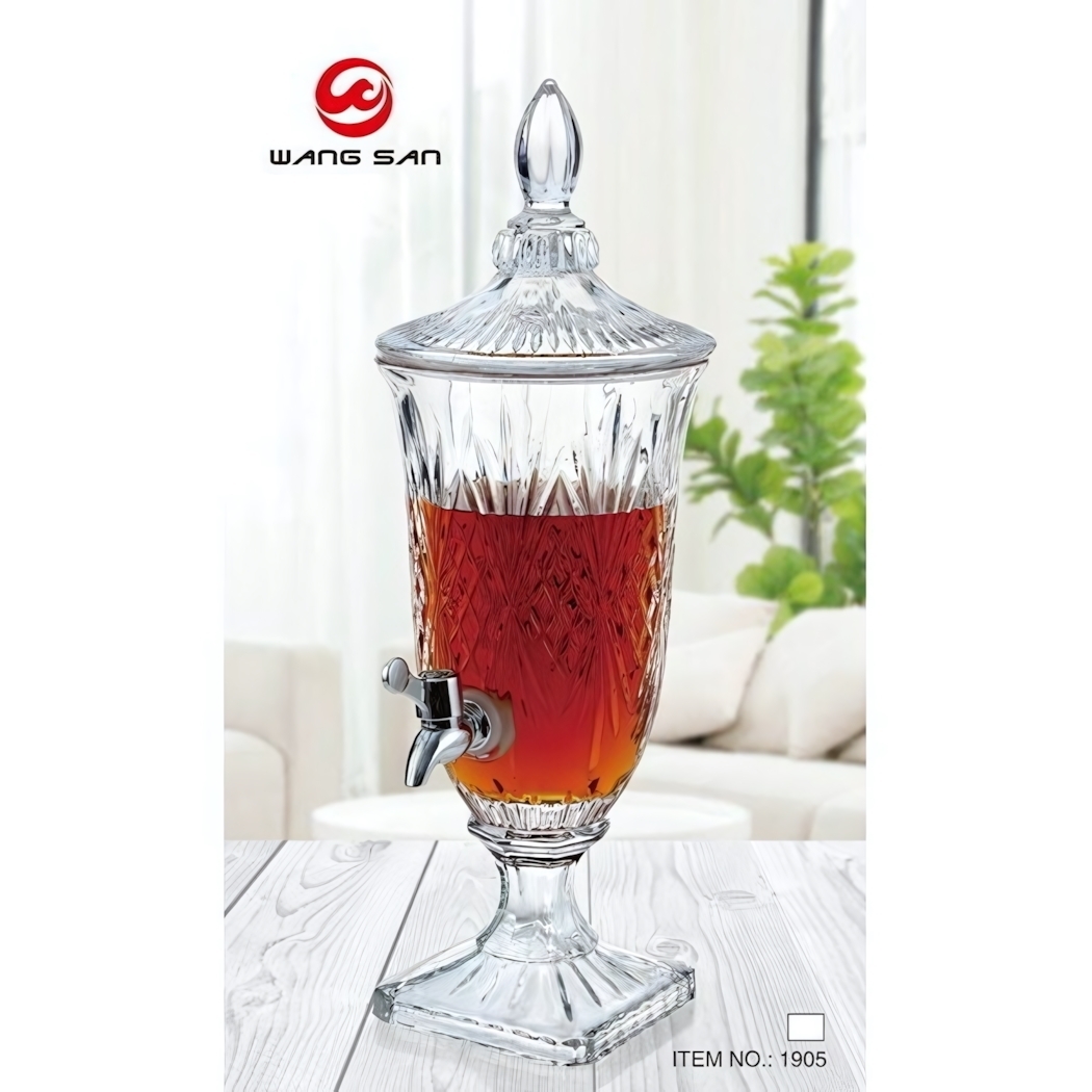 Стеклянная лимонадница с краном превратит обычные напитки в элегантный элемент сервировки. Рифлёные стенки создают игру света, а металлический дозатор гарантирует аккуратный разлив без капель и брызг.