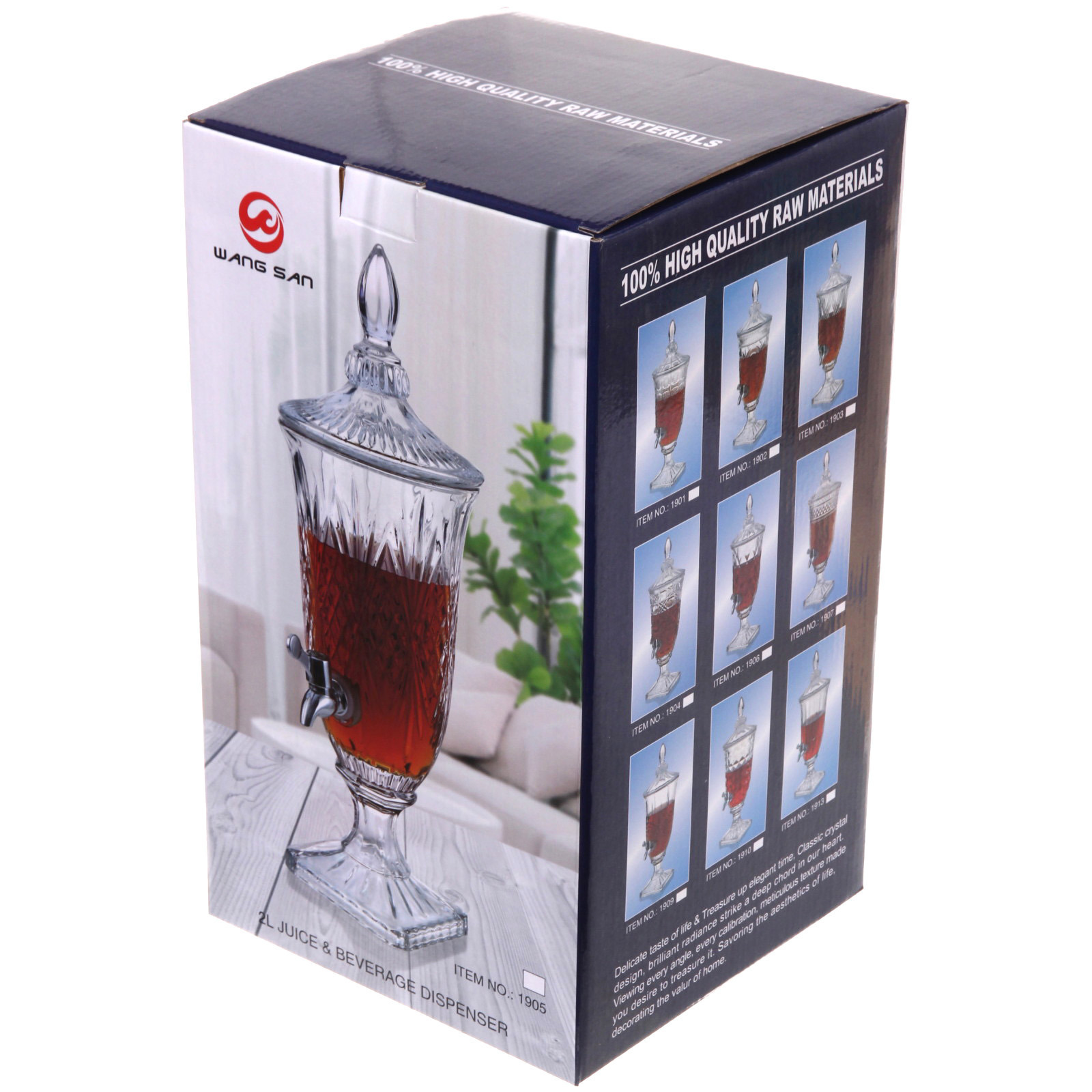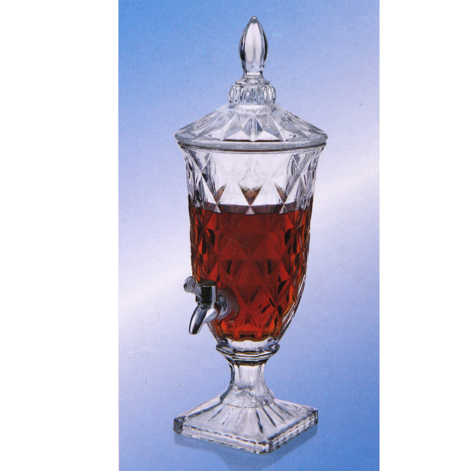 Лимонадница имеет квадратное основание и крышку с декоративной частью в виде шара, что делает ее не только функциональной, но и эстетически привлекательной. Размеры лимонадницы идеально подходят для размещения на столе, а ее стильный вид станет акцентом любого застолья.