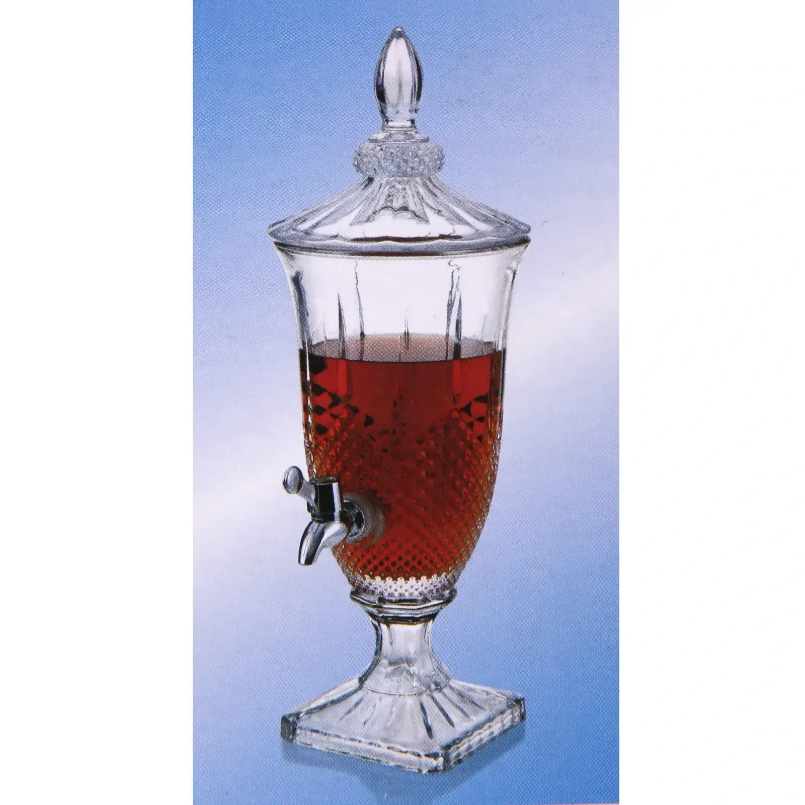 Лимонадница с краном позволяет легко разливать напитки, избегая брызг и капель на столе. Это делает её идеальным выбором для вечеринок, пикников и семейных праздников. Кран, выполненный из металла, обеспечивает надежное и удобное наливание, а крышка защищает содержимое от загрязнений. Лимонадница подходит для подачи как холодных, так и теплых напитков, что делает её универсальным аксессуаром для вашего дома.