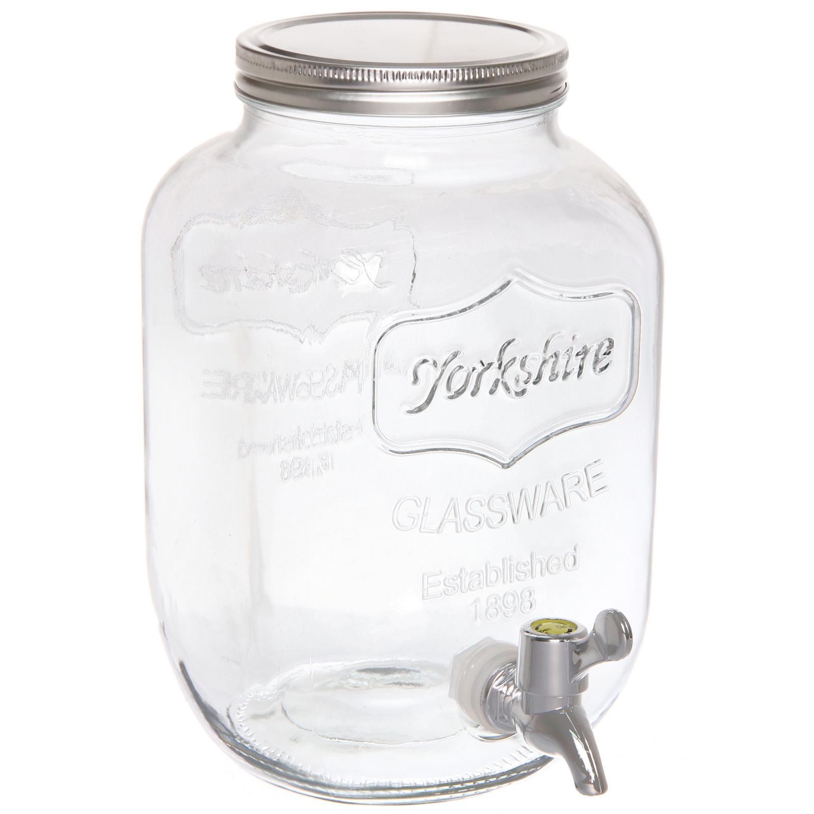 Лимонадница имеет округлую форму и прозрачный цвет, что позволяет видеть содержимое и создает привлекательный вид. Она оснащена закручивающейся металлической крышкой, что обеспечивает надежное хранение напитков. Размеры лимонадницы не указаны, но она визуально выглядит достаточно большой, чтобы вместить разнообразные напитки с фруктами.