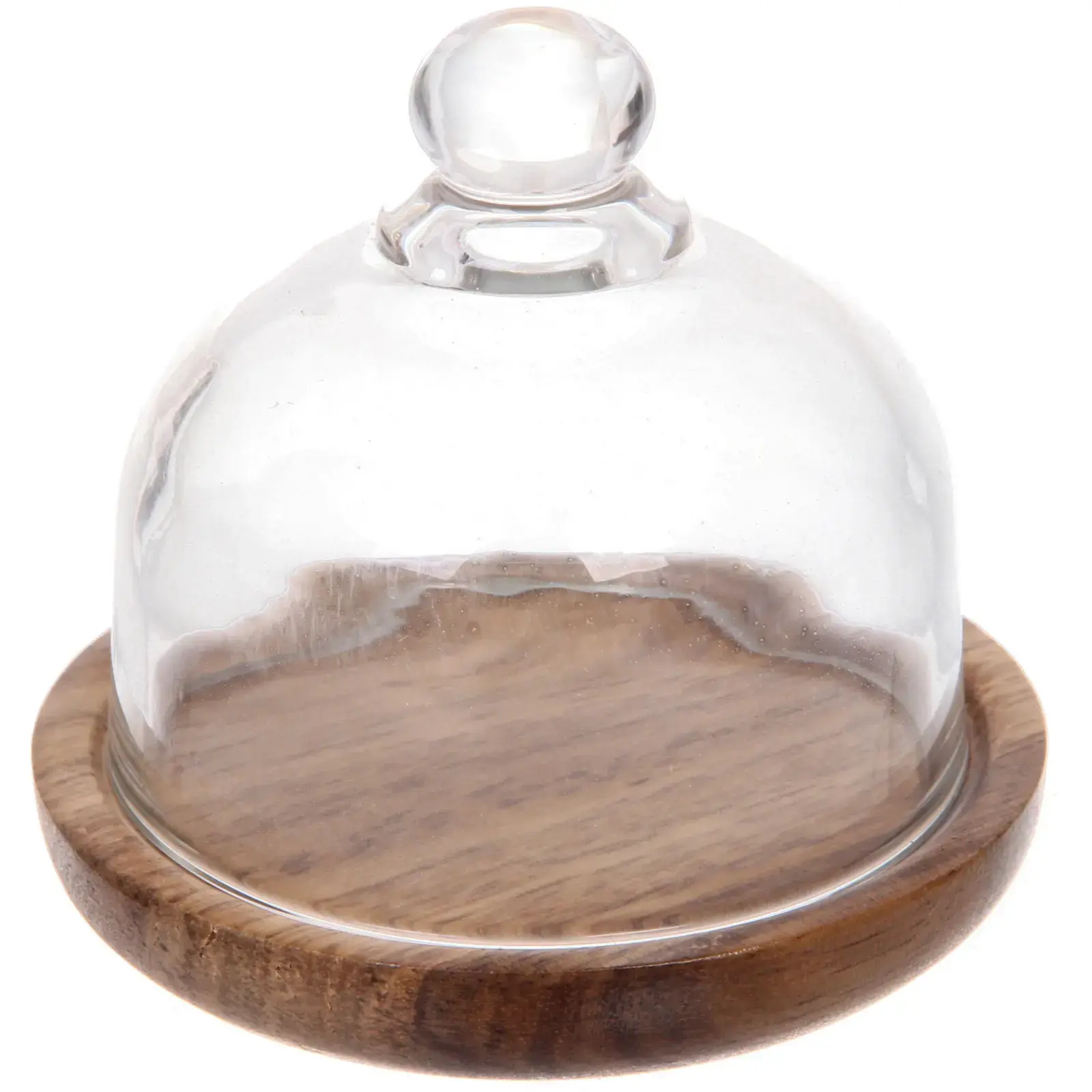 Стеклянный купол и деревянная подставка созданы, чтобы подчеркнуть натуральную красоту цитрусовых, сыров или десертов. Идеальное сочетание практичности и эстетики для вашей кухни или стола.