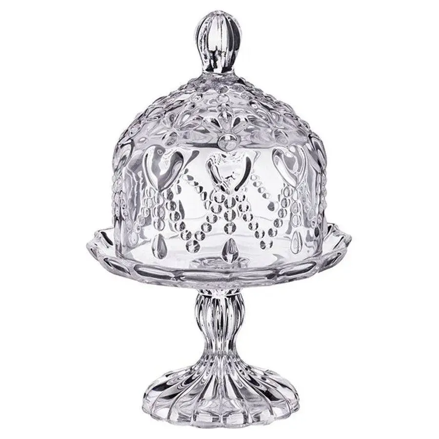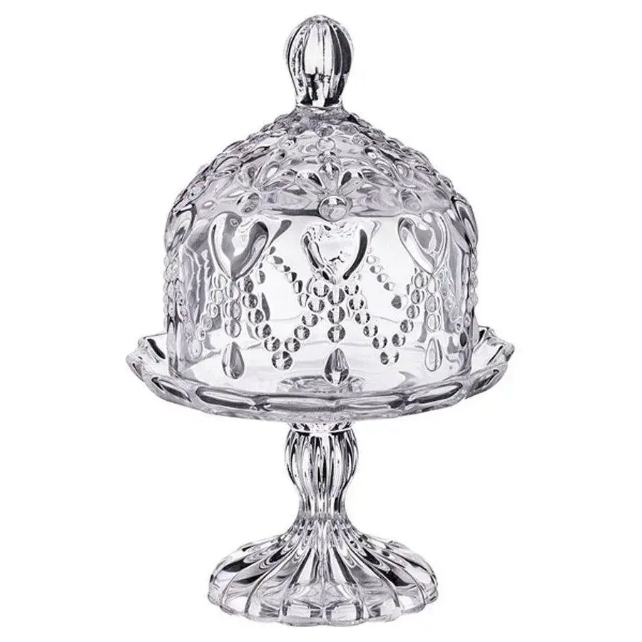 Прозрачная стеклянная ваза на высокой ножке станет идеальным решением для подачи сладостей и закусок. Её элегантный дизайн с декором в виде сердечек и бусинок добавит изысканности вашему столу.