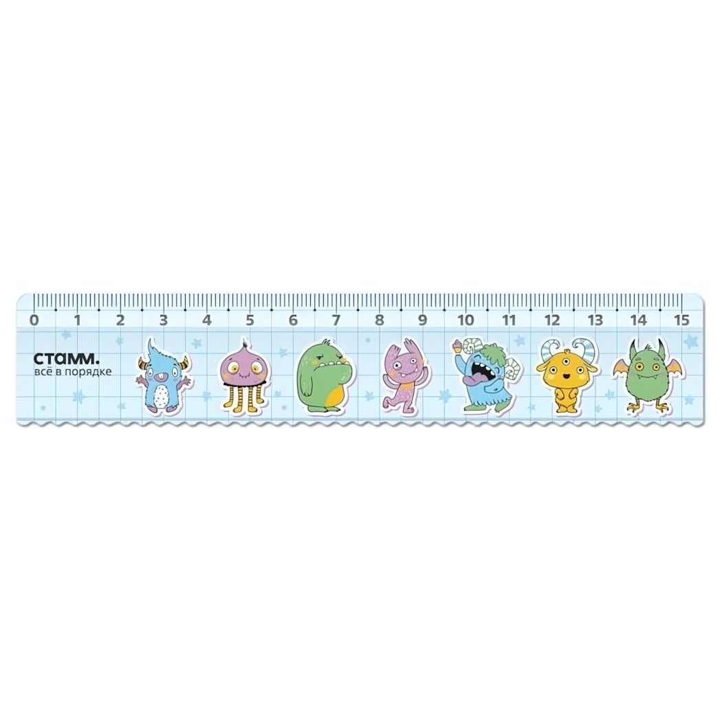 Линейка 15см 'Монстрики', пластиковая, с волнистым краем, европодвес