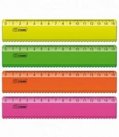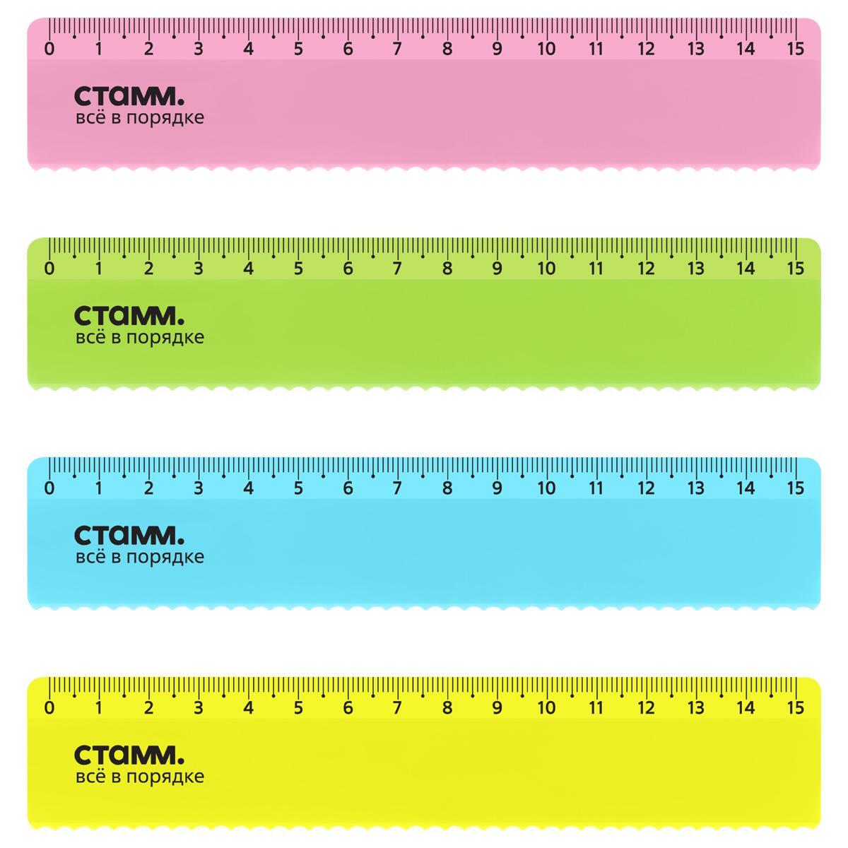 Линейка 15 см СТАММ Neon Cristal, волнистый край, яркие цвета, для школы и офиса