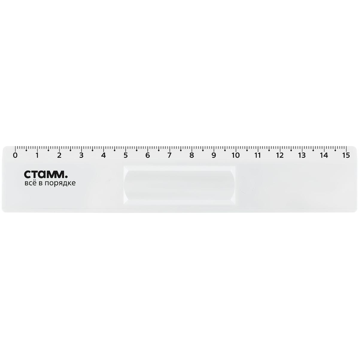 Линейка пластиковая 'СТАММ' 15см, с линзой, прозрачная, для точных измерений