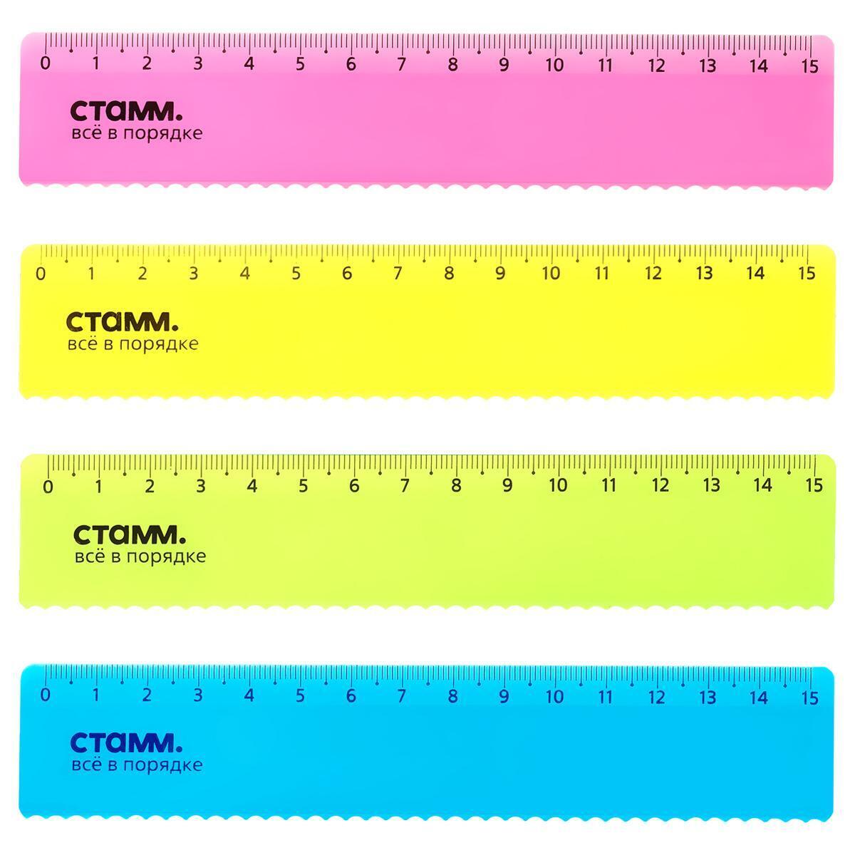Линейка пластиковая 15 см с волнистым краем, неоновые цвета, безопасные края, полистирол «СТАММ»
