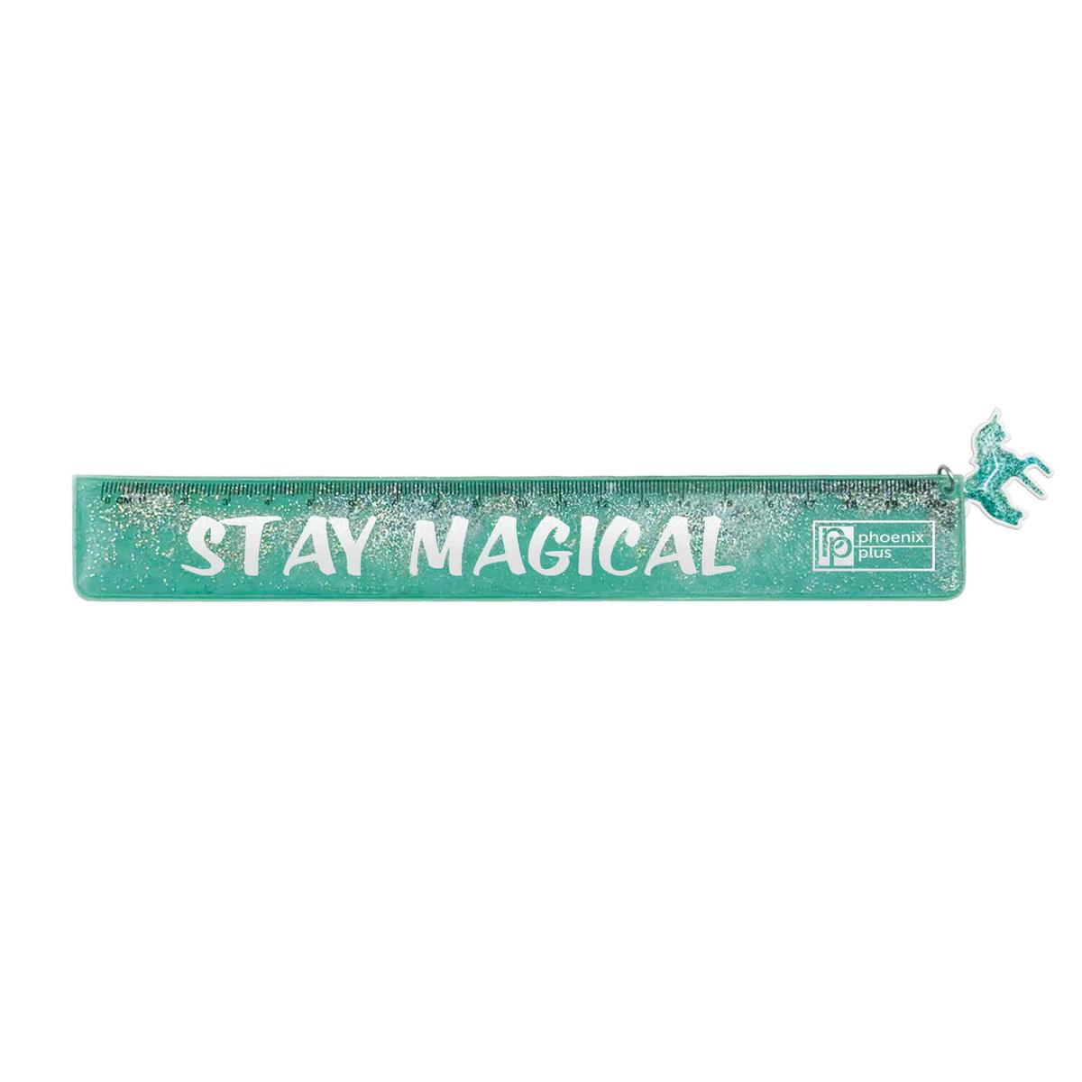 Погрузитесь в мир творчества и магии с этой очаровательной бирюзовой линейкой! Она не просто инструмент для измерения, а настоящий источник вдохновения. Блестки внутри и милый единорог на конце превратят каждое занятие в увлекательное приключение.