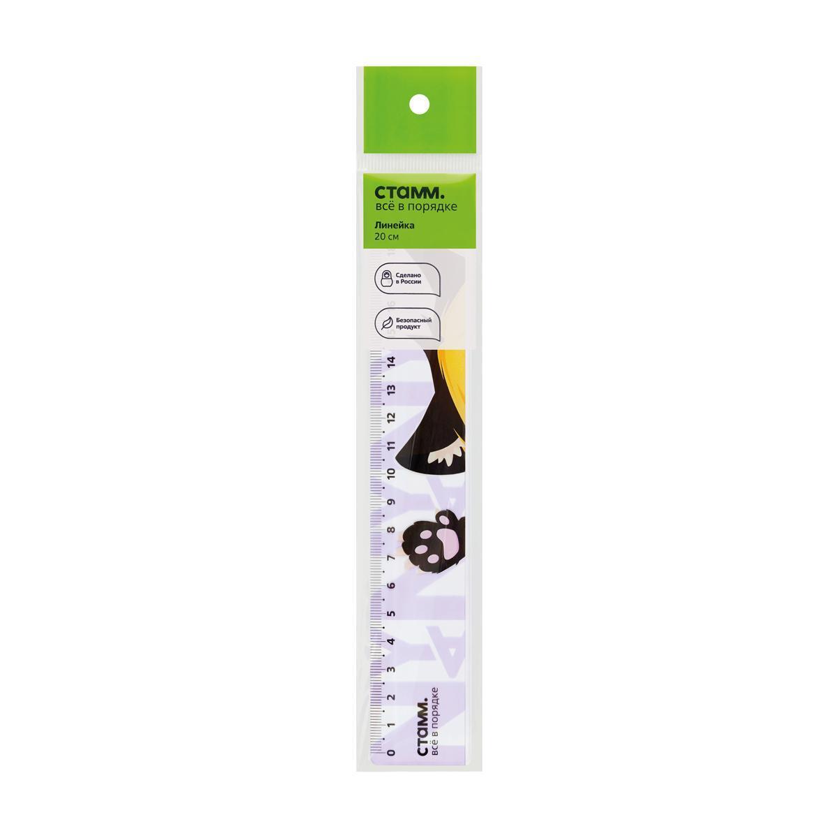 Линейка пластиковая 'Ушки' 20см, широкая, полистирол, фиолетовый дизайн