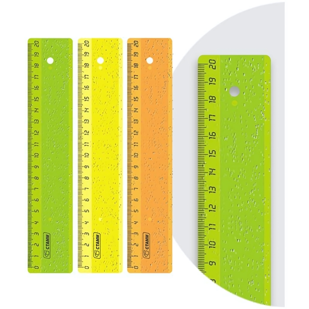 Линейка имеет специальное отверстие для подвешивания, что упрощает хранение. Её размеры – 20 см в длину и 35 мм в ширину – оптимальны для повседневного использования. Гладкая глянцевая поверхность защищает от царапин и сколов.