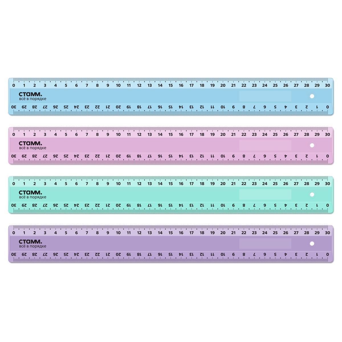 Линейка пластиковая 30см «СТАММ», 2 шкалы, непрозрачная, пастельные цвета