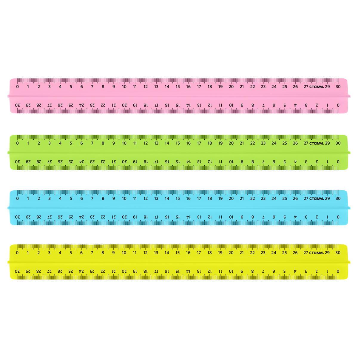 Линейка 30 см, неоновая, для школы и офиса, полистирол, ассорти цветов