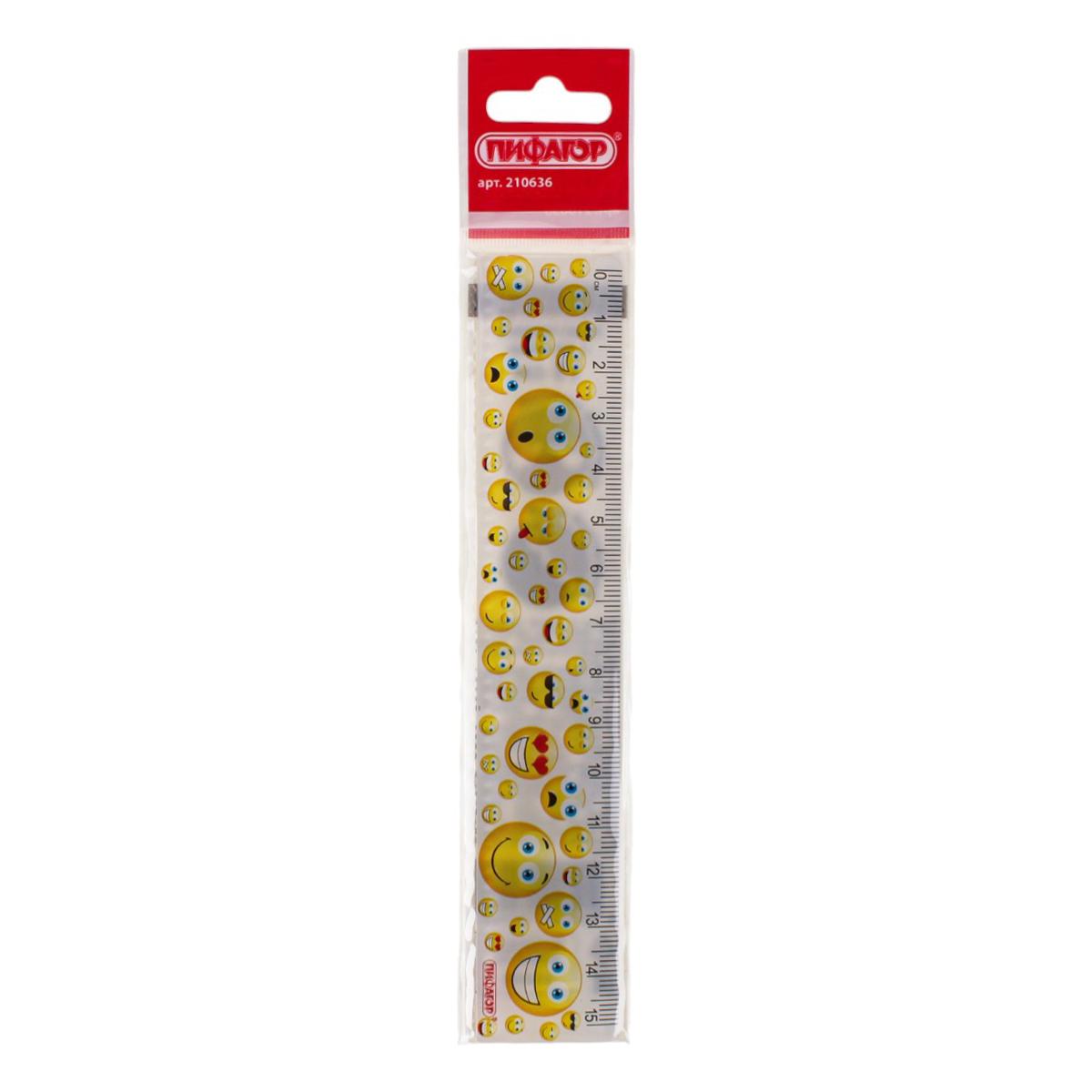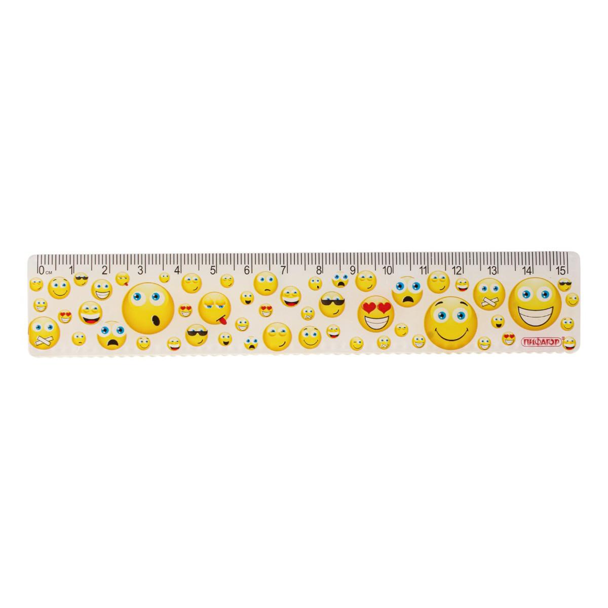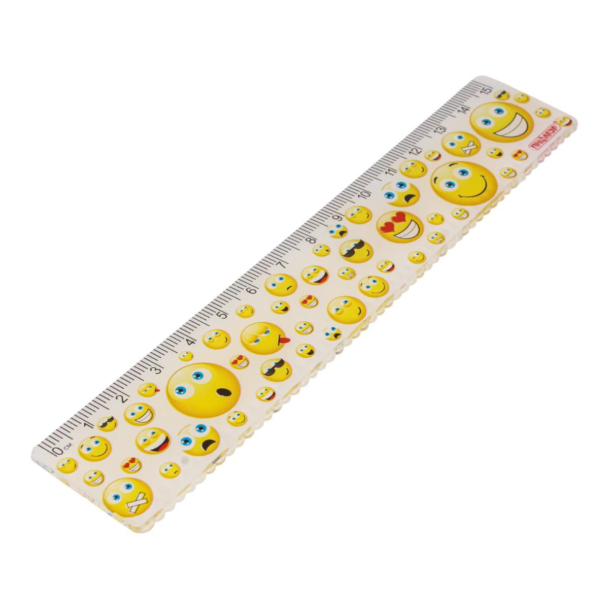 Линейка пластиковая 15 см «Смайлики» с цветной печатью, демократичный дизайн для школы и дома
