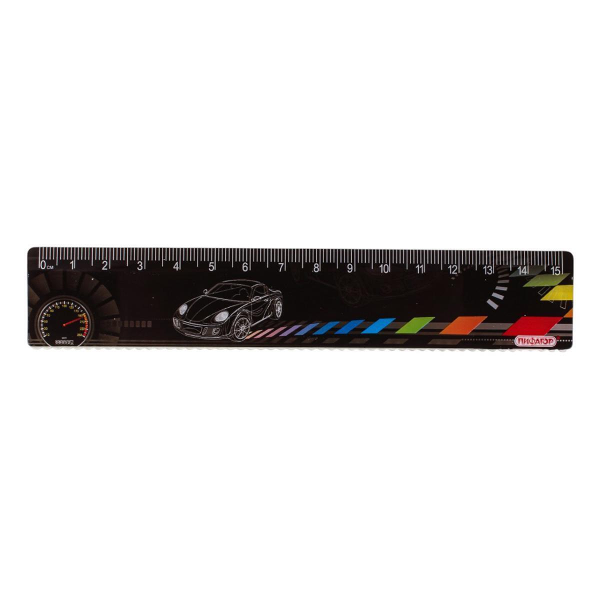 Линейка пластиковая 15 см «Пифагор Авто», дизайн с автомобилем, цветная печать, европодвес