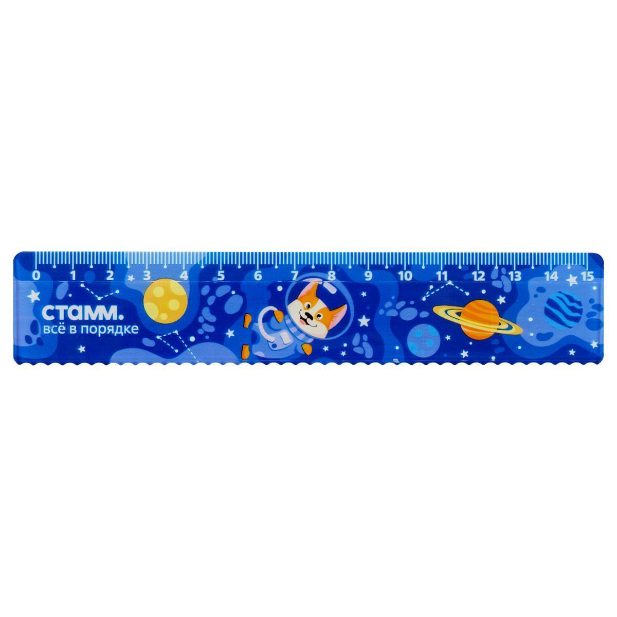 Линейка пластиковая 15см, 'Космос', безопасные края, полистирол