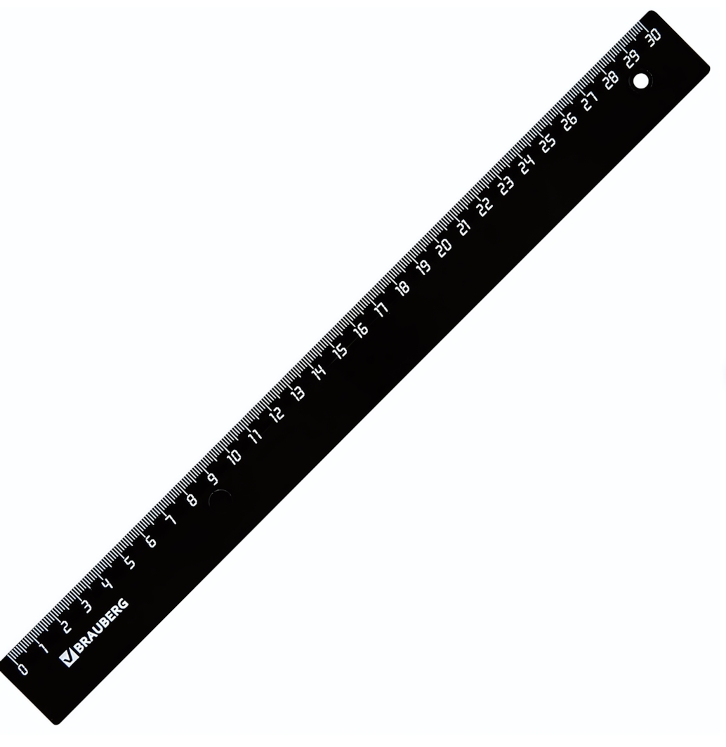 Линейка пластиковая 'BRAUBERG' 30см, черная, с контрастной шкалой