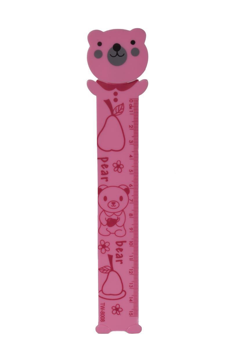 Линейка пластиковая 15см "Зверята", милый дизайн медведь, розовая, для школы