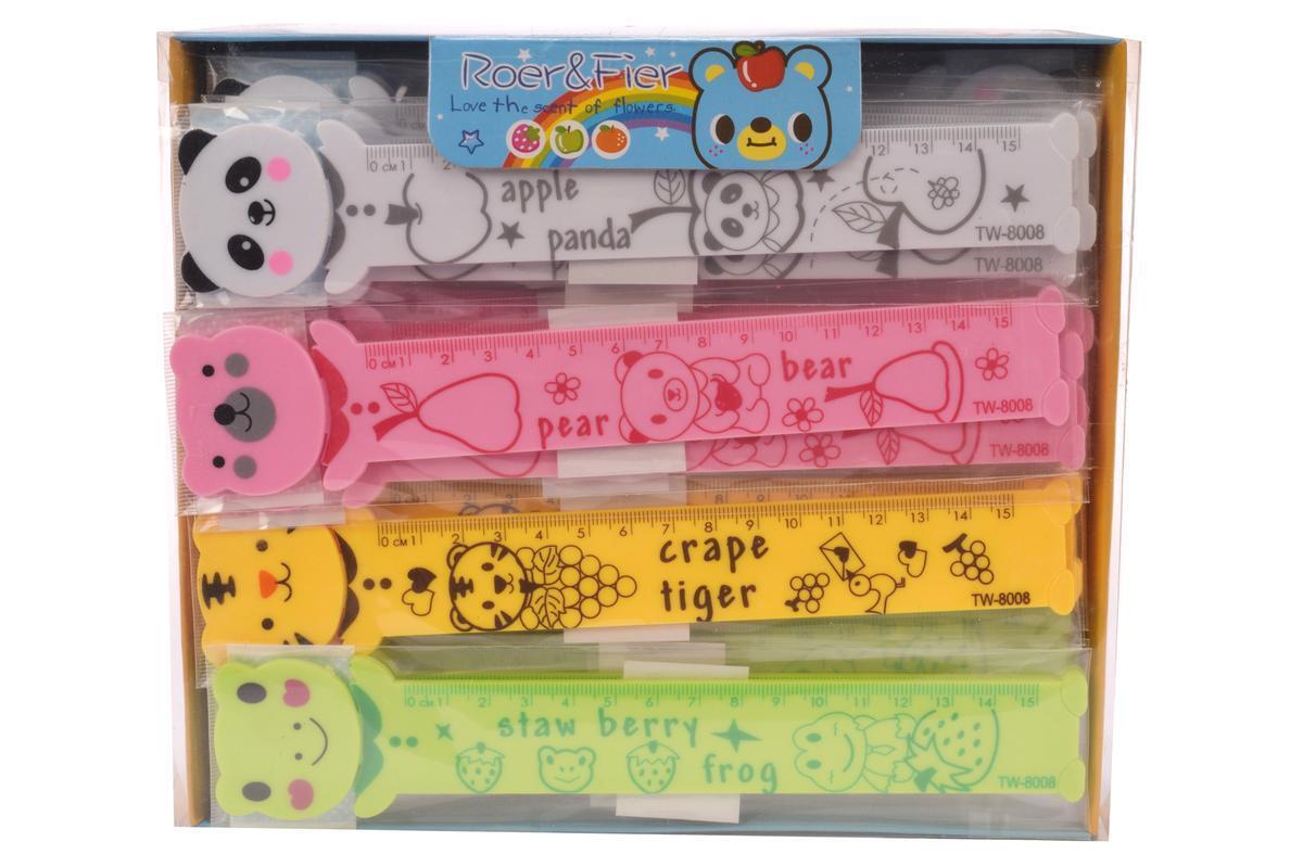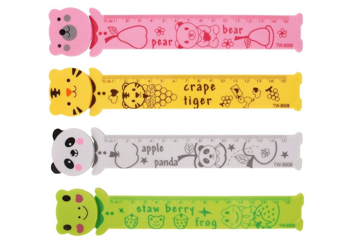 Линейка пластиковая 15 см с фигурками животных, 4 дизайна: мишка, тигр, панда, лягушка