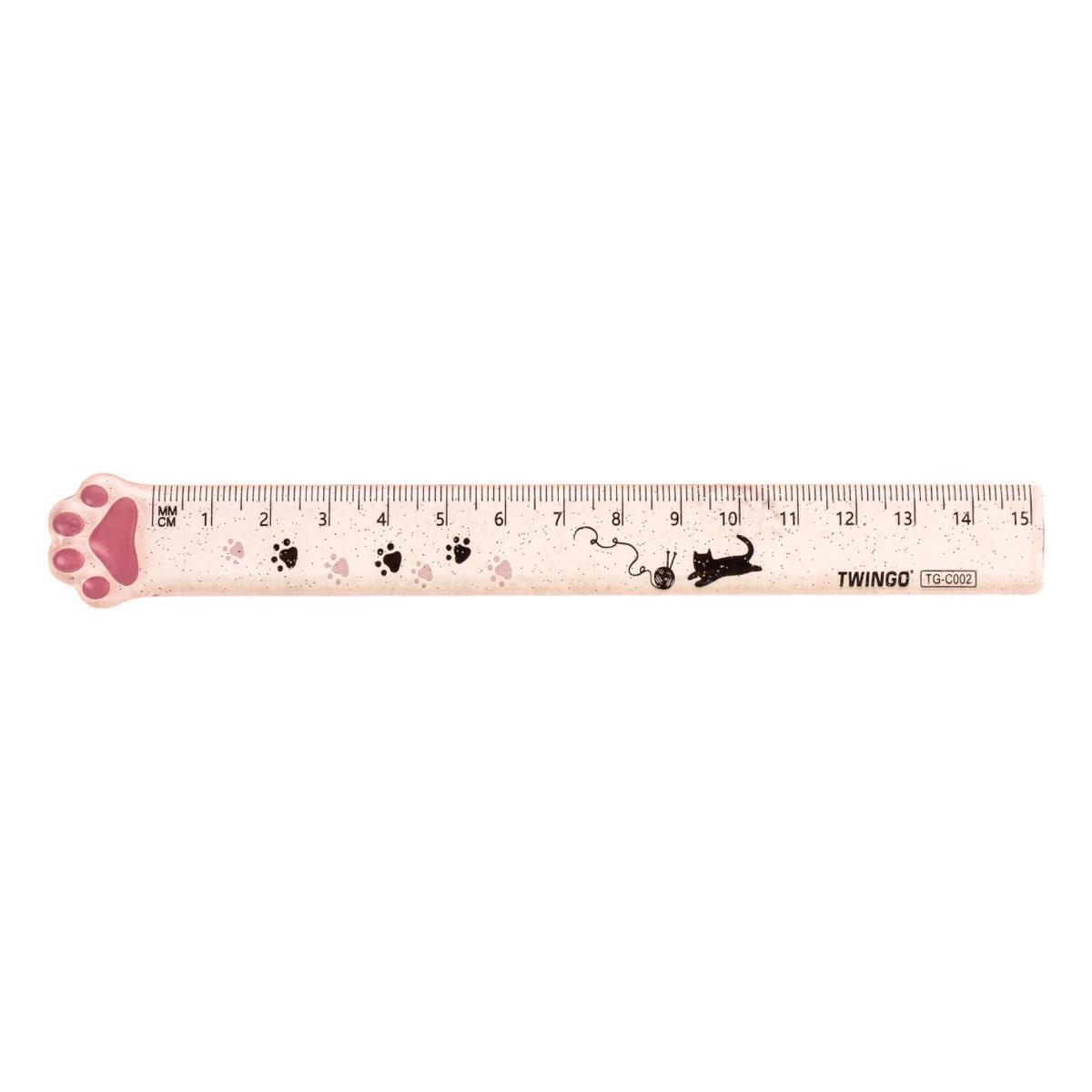 Линейка изготовлена из качественного пластика, устойчивого к механическим повреждениям. Стильный дизайн с черными следами лап и силуэтом кошки придется по душе как девочкам, так и мальчикам.