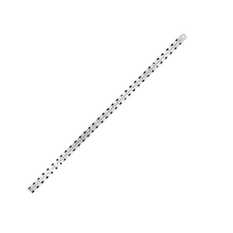 - Пружинистая сталь: Линейка не сломается при случайном сгибании, что гарантирует её долгий срок службы.