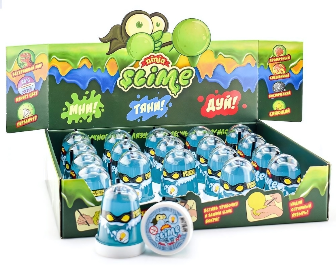 Лизун «Ninja» светящийся, синий, 130 г, с трубочкой для пузырей, полимер