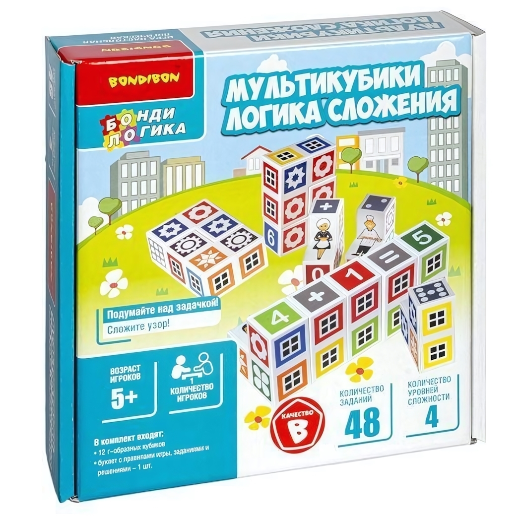 Логическая игра "Мультикубики. Логика сложения", 12 кубиков, от 5 лет, 48 заданий