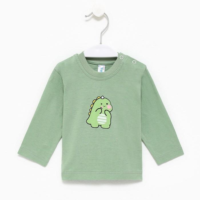Лонгслив детский "А.M0998К-0/1" с принтом динозавра, 100% хлопок, оливковый, р.68-74см