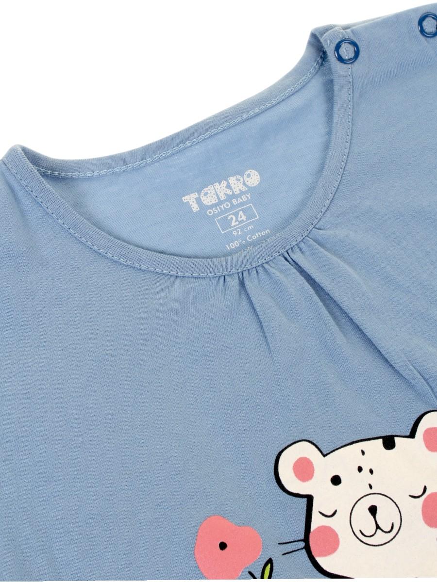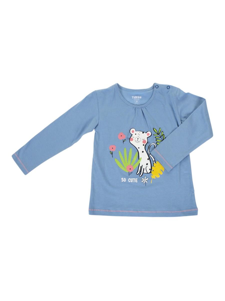 Лонгслив для девочки Takro, голубой, р.92, милый леопард "So Cute", хлопок