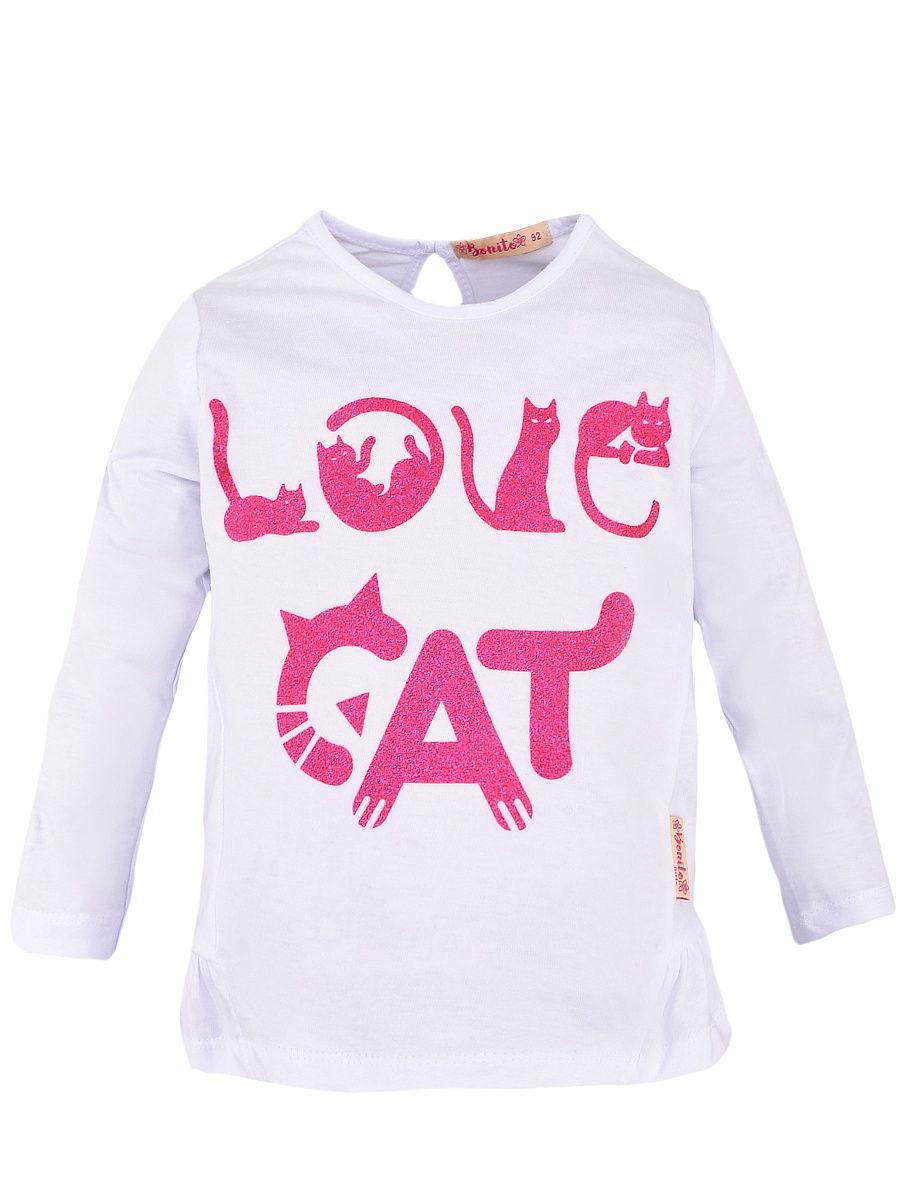 Лонгслив для девочки р.110 белый хлопок "LOVE CAT" с принтом