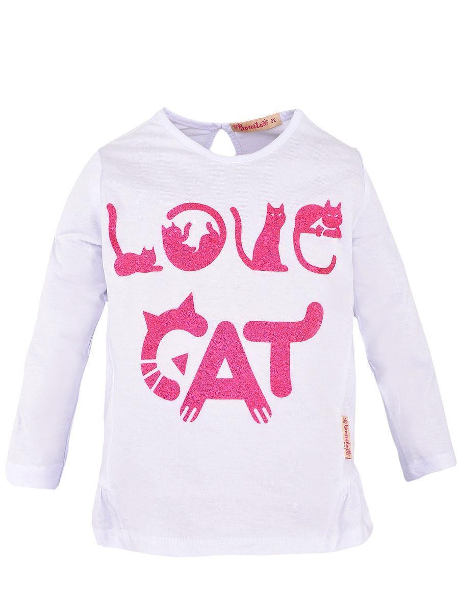 Лонгслив для девочек "Bonito" с принтом кошек, размер 92, 100% хлопок, белый