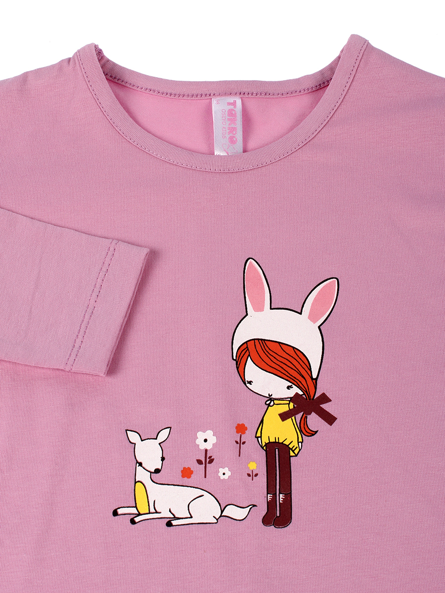 Лонгслив для девочки Takro, розовый, с принтом зайки, 100% хлопок, р.110