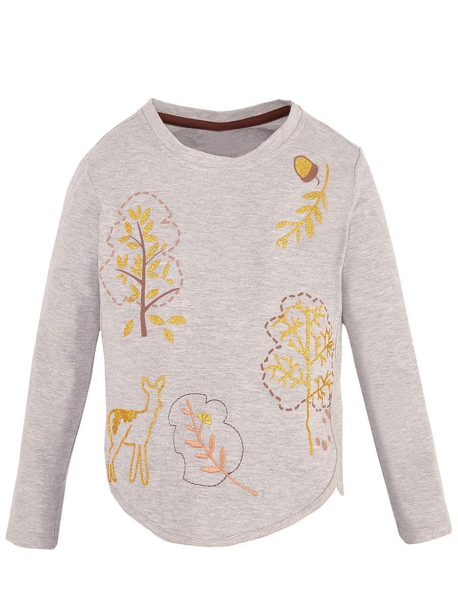 Лонгслив для девочек с аппликацией, 100% хлопок, размер 98, светло-серый, Bonito