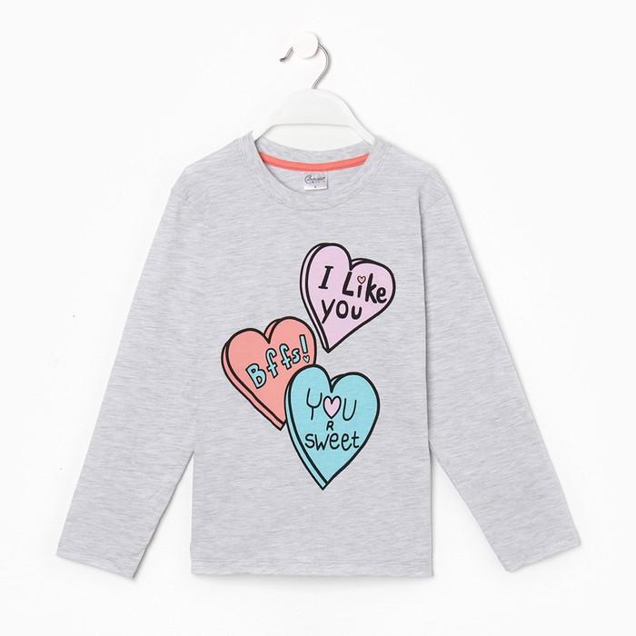 Лонгслив для девочки Bella Veza, серый, с сердечками, размер 128 см, 100% хлопок