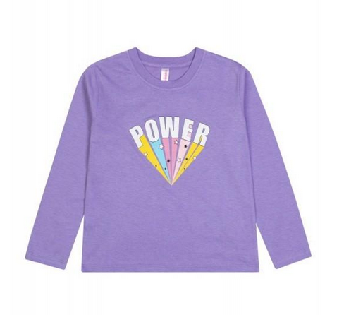 Лонгслив для девочки Takro, сиреневый с надписью "Power", хлопок, р. 122