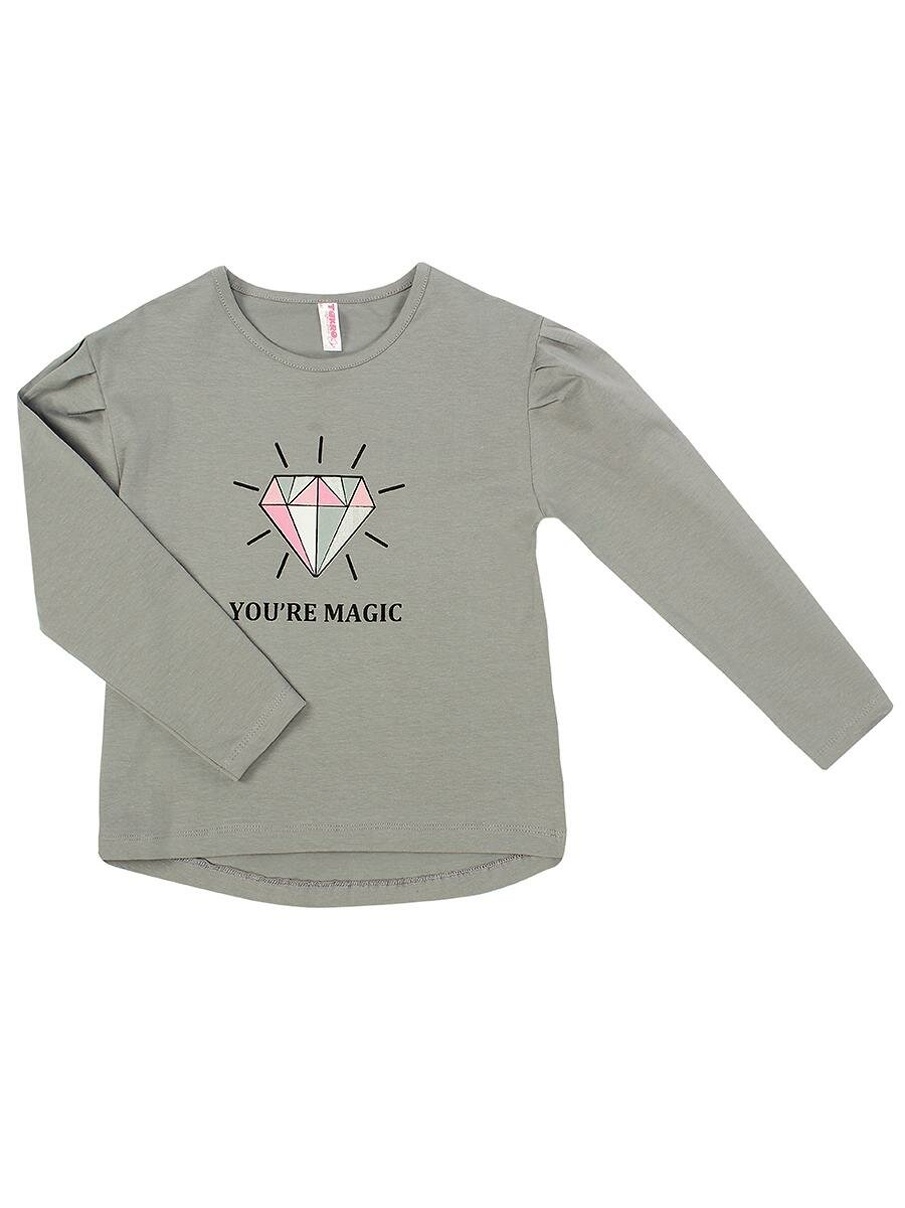 Лонгслив для девочек, 100% хлопок, размер 122, серый, принт «YOU'RE MAGIC», Takro
