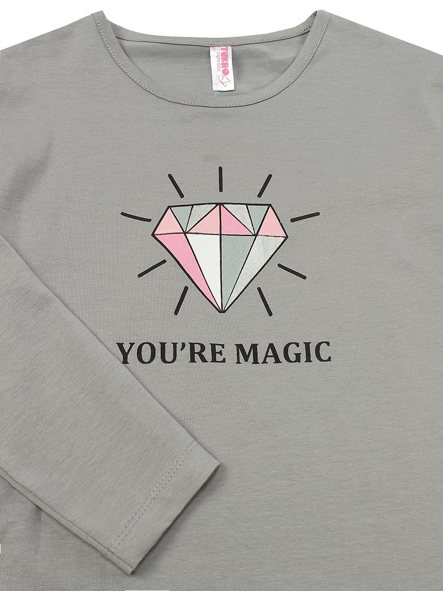 Лонгслив Takro для девочки, серый, 134 см, хлопок 100%, с принтом "You're Magic"