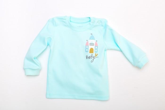 Лонгслив для девочки Umka, светло-голубой, размер 74, 100% хлопок, с принтом "Baby", удобные кнопки