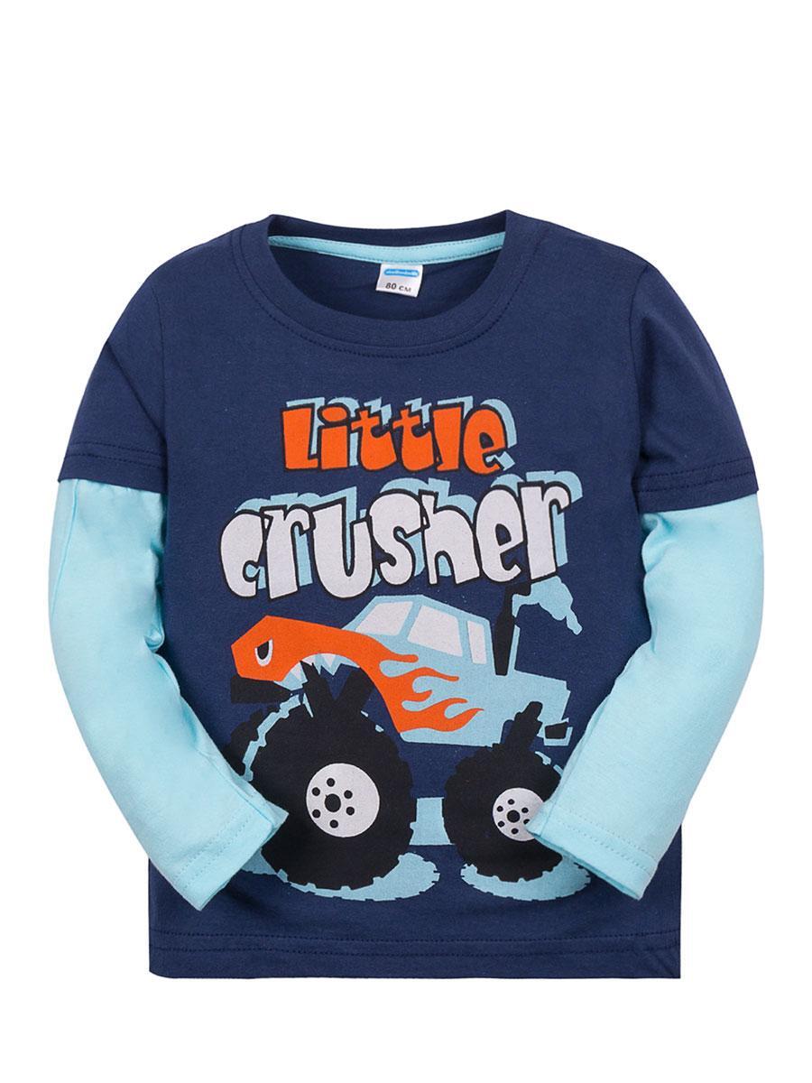 Лонгслив для мальчика "Great wheel", синий с принтом грузовика, р.86 (хлопок)
