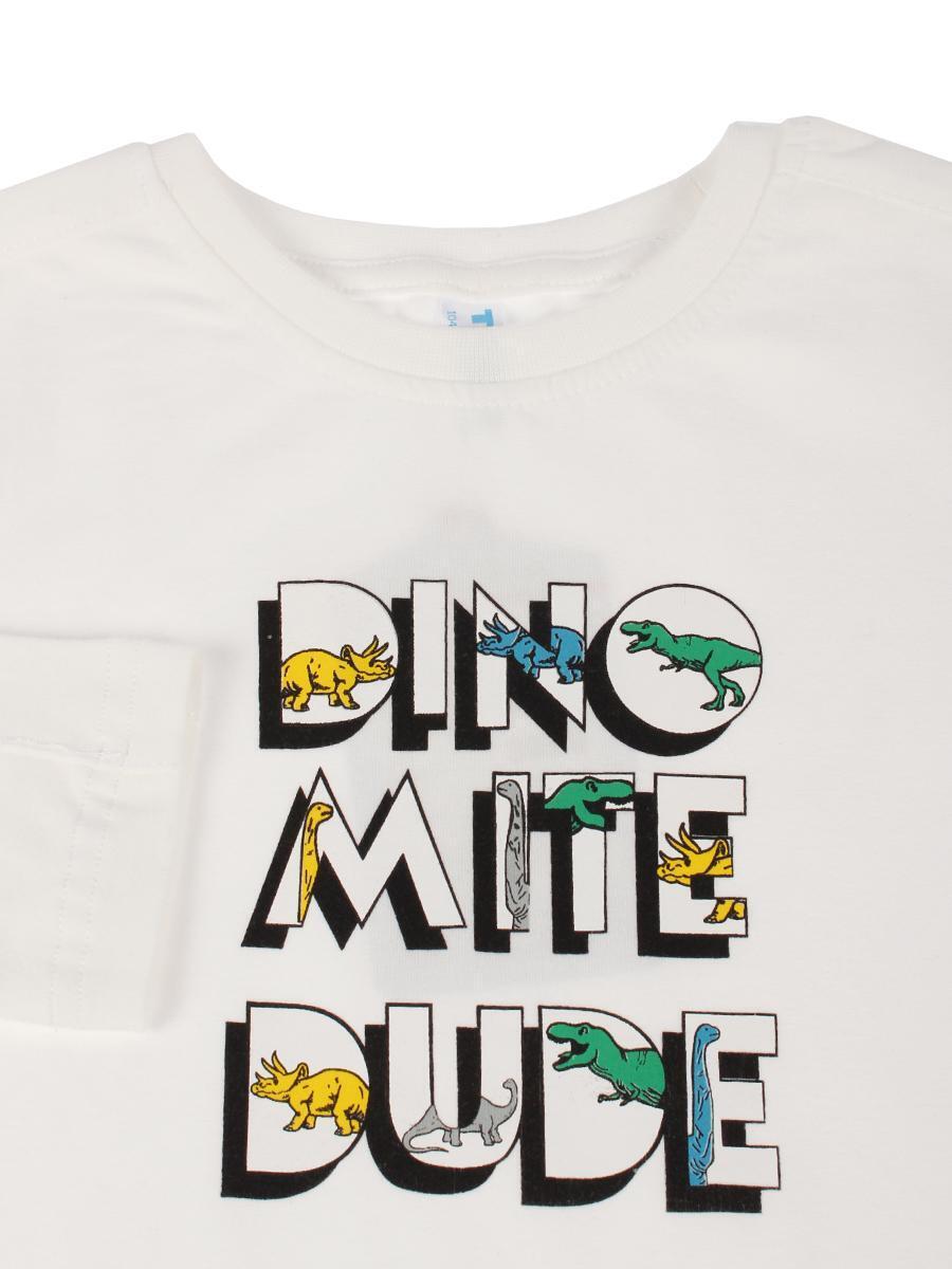 Подарите своему ребенку комфорт и стиль с лонгсливом 'DINO MITE DUDE'. Яркий принт с изображением динозавров придется по душе каждому юному любителю древних ящеров.
