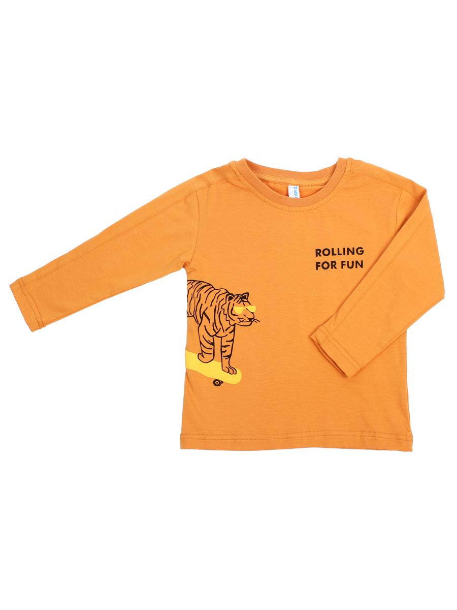 Лонгслив для мальчика "Rolling for Fun", принт тигр на скейте, р.98, охра