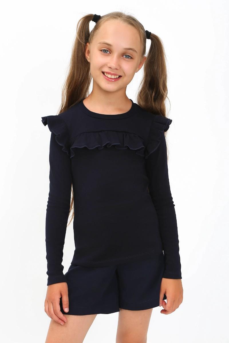 Лонгслив для девочки "Школа-5", тёмно-синий, р. 140, хлопок, комфортный, прилегающий силуэт
