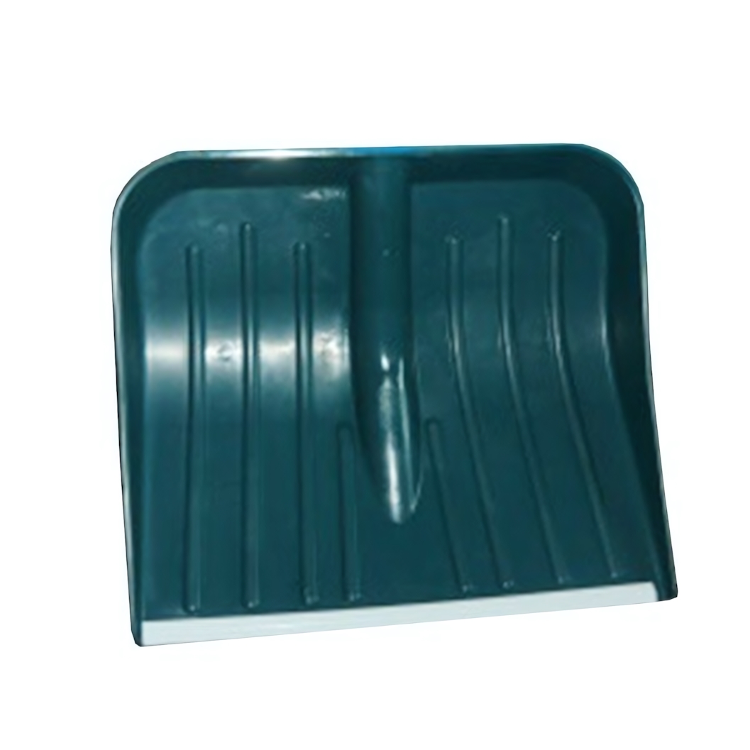 Лопата поставляется без черенка, что дает возможность подобрать рукоятку нужной длины под ваш рост и задачи. Ковш оснащен металлической планкой по нижнему краю — она защищает рабочую кромку от износа и облегчает срезание плотного снежного слоя. Внутренние ребра жесткости усиливают корпус и помогают сохранять форму даже при интенсивной нагрузке.