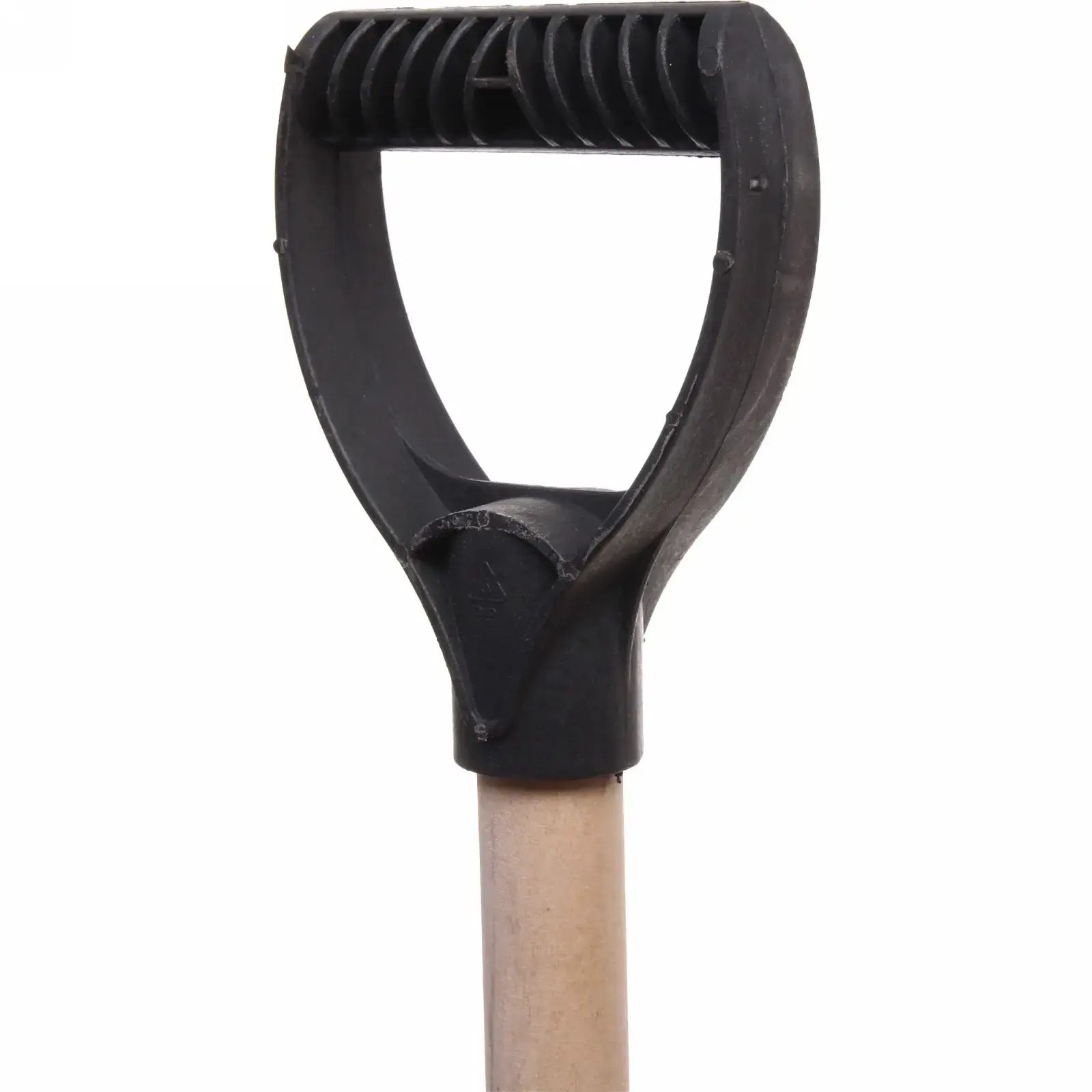 Черенок изготовлен из светлого дерева, что делает лопату лёгкой и удобной в переноске. Верхняя часть оснащена D-образной пластиковой ручкой с рифлёной внутренней поверхностью для надёжного захвата и комфортной работы даже в перчатках.