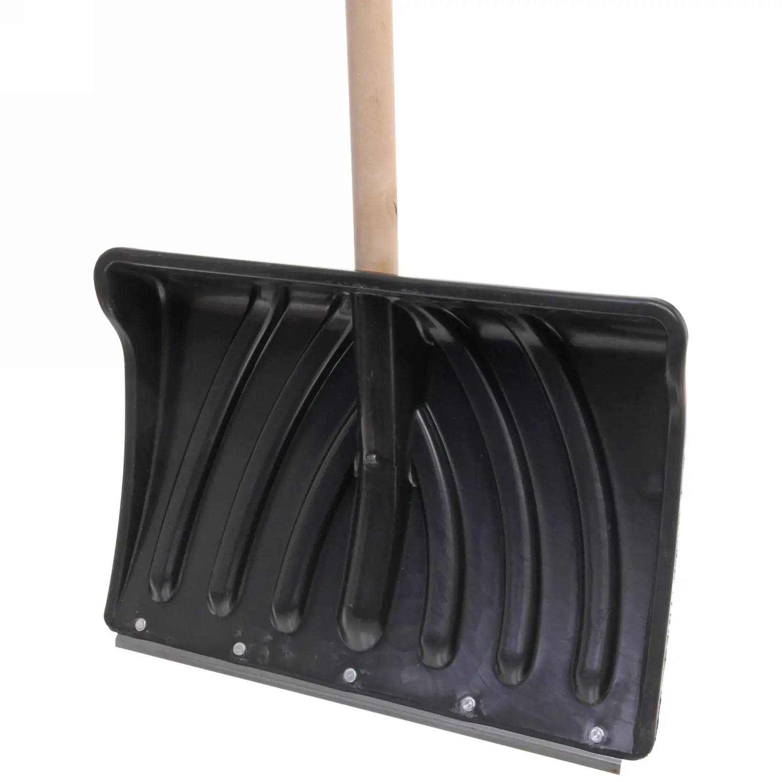 Рабочее полотно выполнено из прочного пластика с рельефными ребрами жёсткости. Это обеспечивает устойчивость формы даже при сильной нагрузке. По нижнему краю ковша установлена оцинкованная металлическая планка, закреплённая заклёпками – она помогает срезать обледеневший снег и защищает пластик от повреждений.