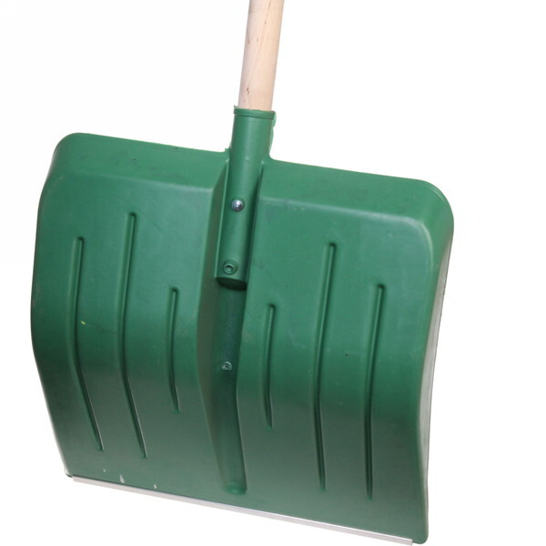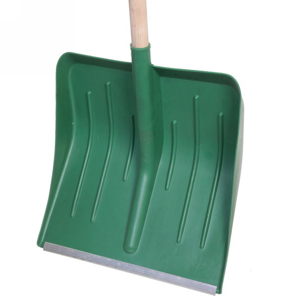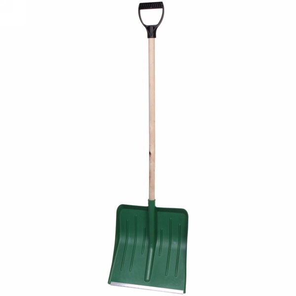 Лопата снеговая пластиковая 410х400 мм с алюминиевой планкой, деревянный черенок и v-ручкой