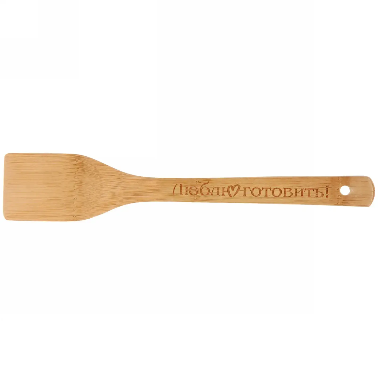 Преимущества бамбуковой лопатки «Люблю готовить» заключаются не только в её функциональности, но и в эстетическом дизайне. Светло-коричневый цвет и естественная текстура дерева придают ей стильный вид, а надпись на ручке добавляет индивидуальности. Лопатка легко моется и не впитывает посторонних запахов, что делает её практичным выбором для любой кухни.