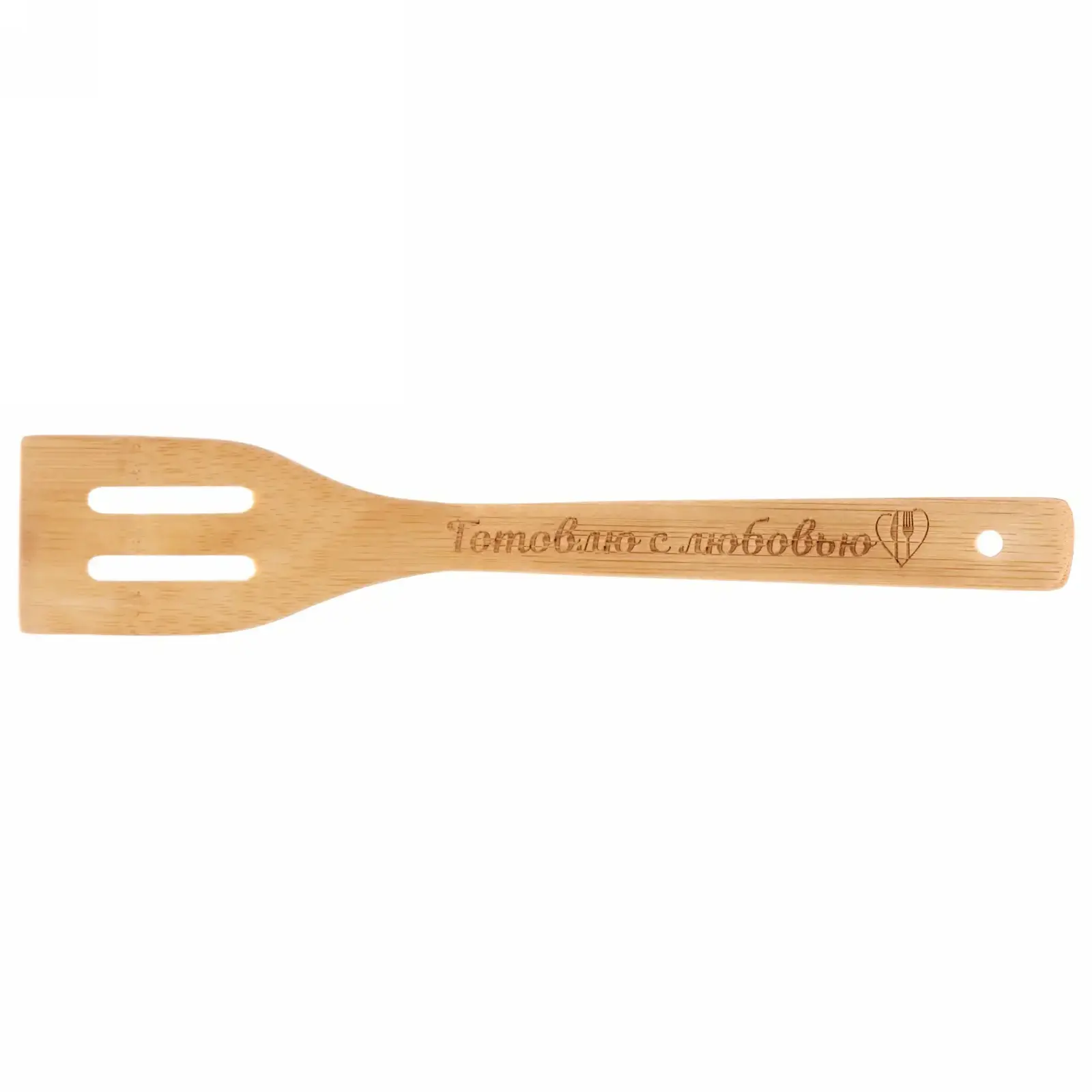 Эта бамбуковая лопатка станет незаменимым помощником на вашей кухне. Она не только удобна в использовании, но и безопасна для посуды с антипригарным покрытием. Благодаря своим антимикробным свойствам, бамбук обеспечивает чистоту и гигиеничность при приготовлении пищи. Лопатка имеет длину 30 см и ширину 6 см, что делает её идеальной для переворачивания и сервировки различных блюд.