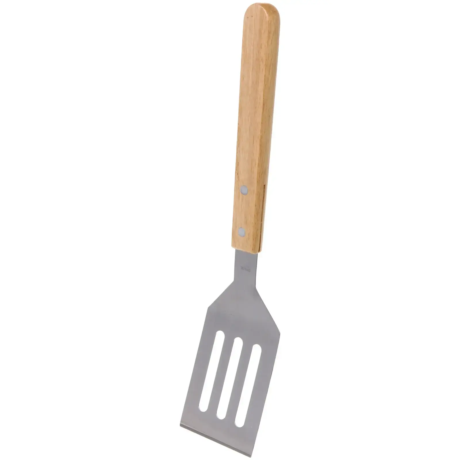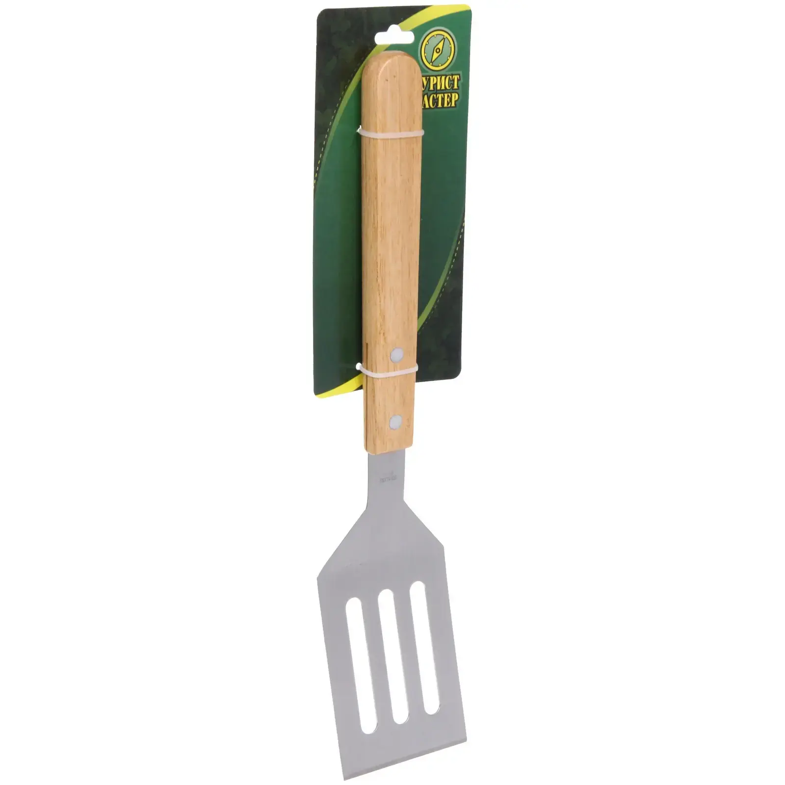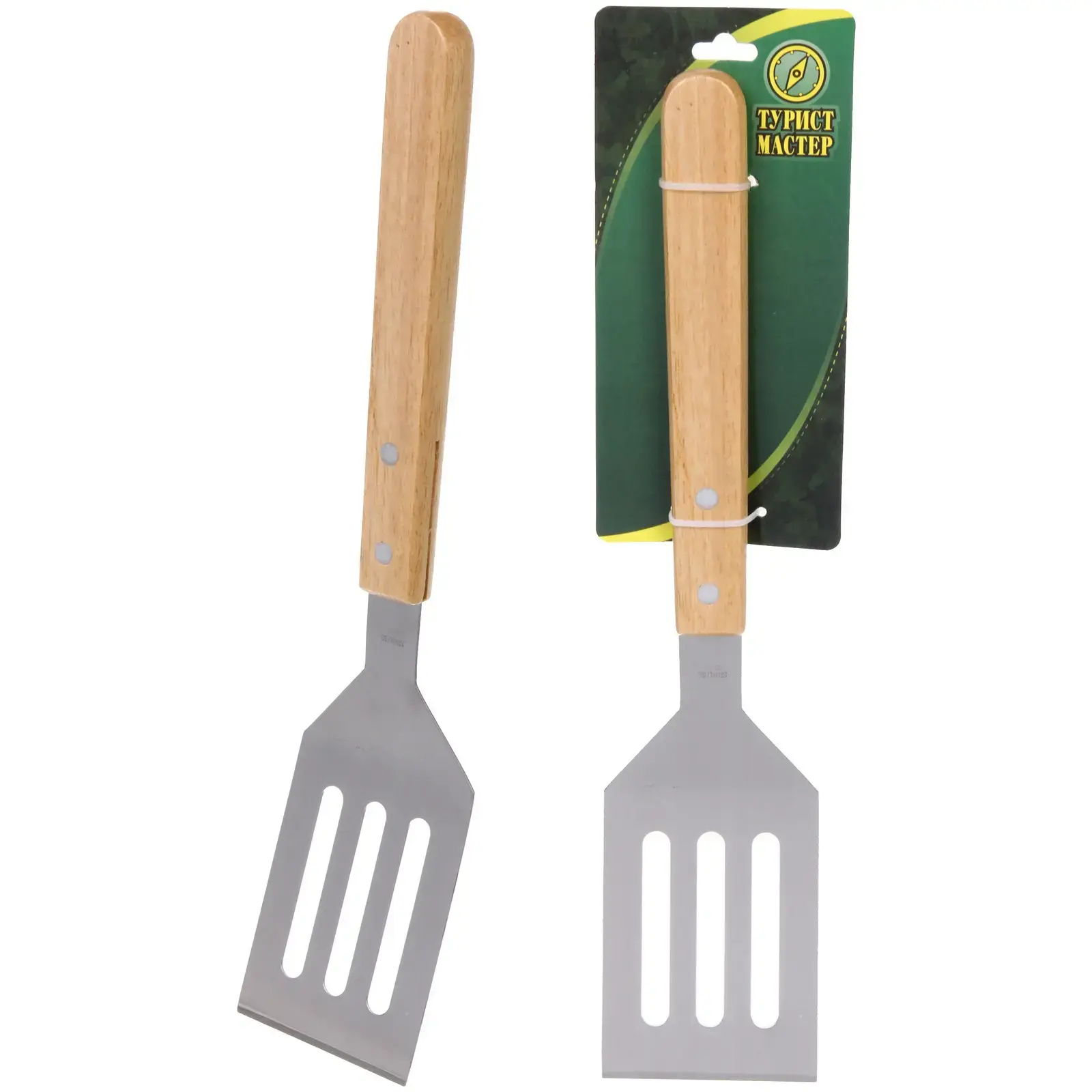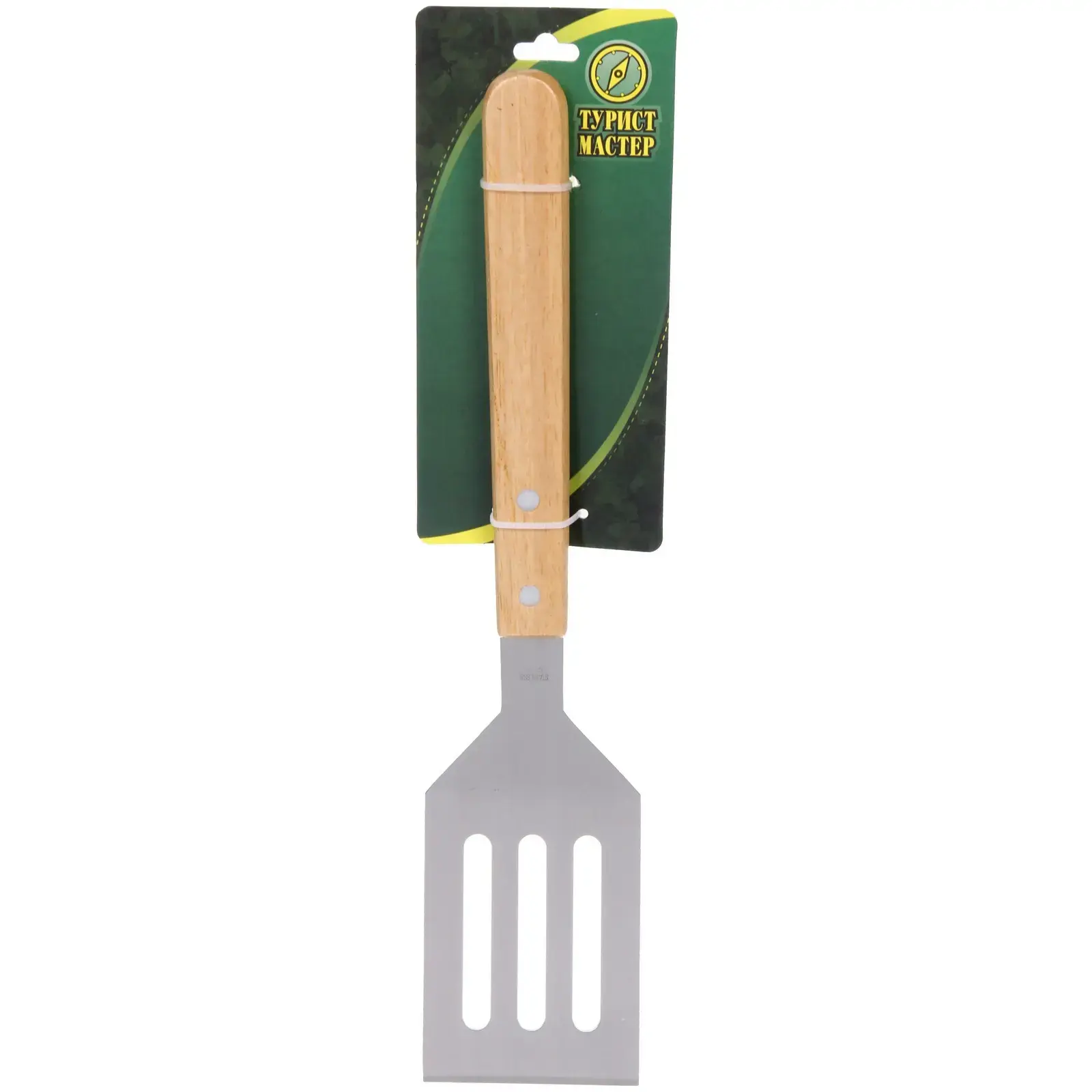 Лопатка имеет эргономичную деревянную ручку, которая обеспечивает удобный хват и предотвращает выскальзывание инструмента из руки. Это особенно важно, когда вы готовите на гриле или барбекю, где требуется высокая точность и контроль. На тонком конце лопатки имеются зубцы, которые позволяют удобно захватывать мелкие кусочки пищи, что делает её универсальным инструментом для любых кулинарных экспериментов.