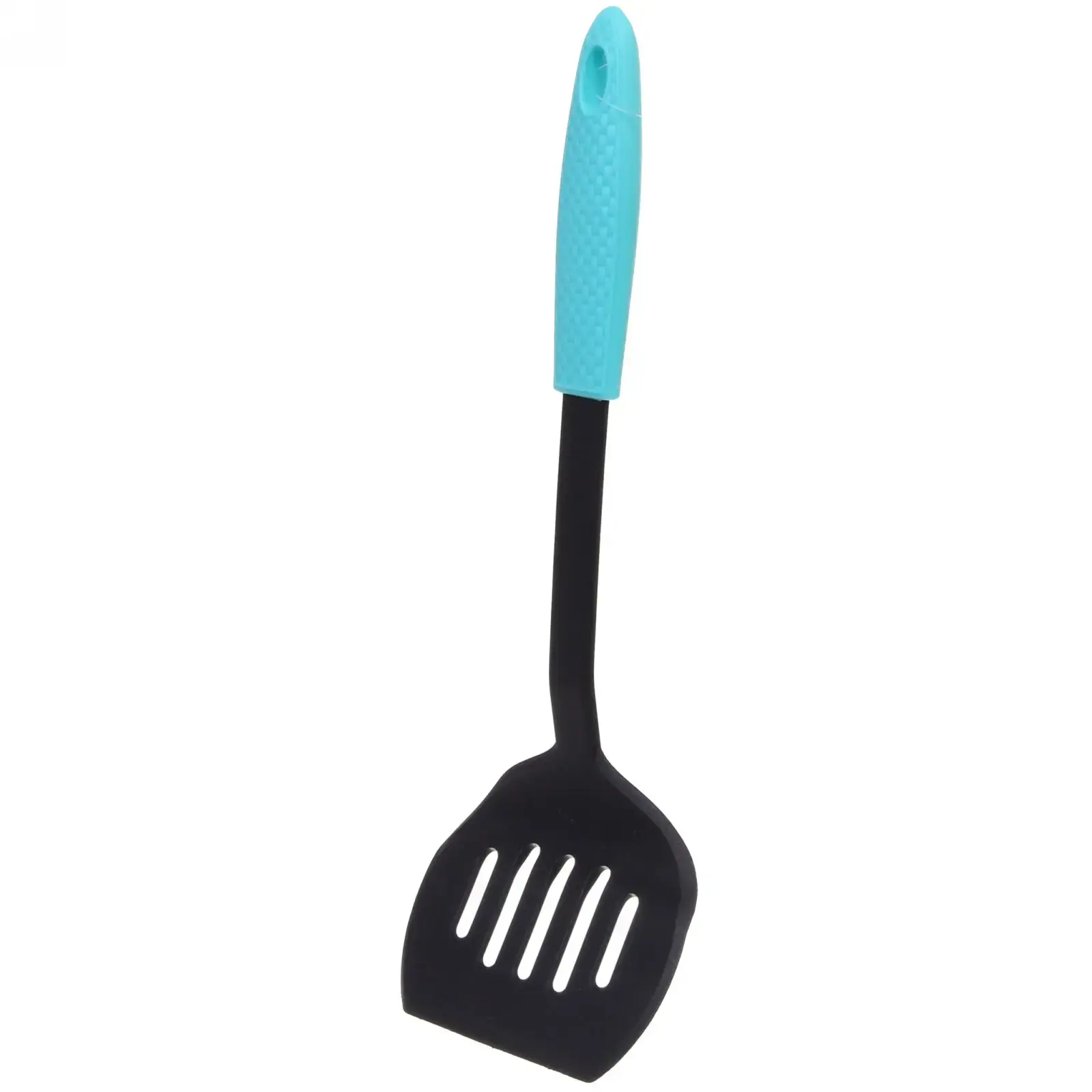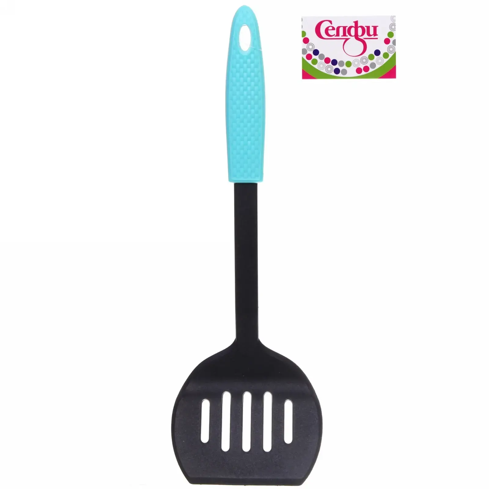 Лопатка имеет стандартные размеры, что делает её универсальной для любых кухонных задач. Рабочая часть выполнена из черного пластика, а ручка — из голубого, что придаёт ей стильный вид. Этот инструмент станет отличным дополнением к вашей кухонной утвари и поможет вам готовить с удовольствием.