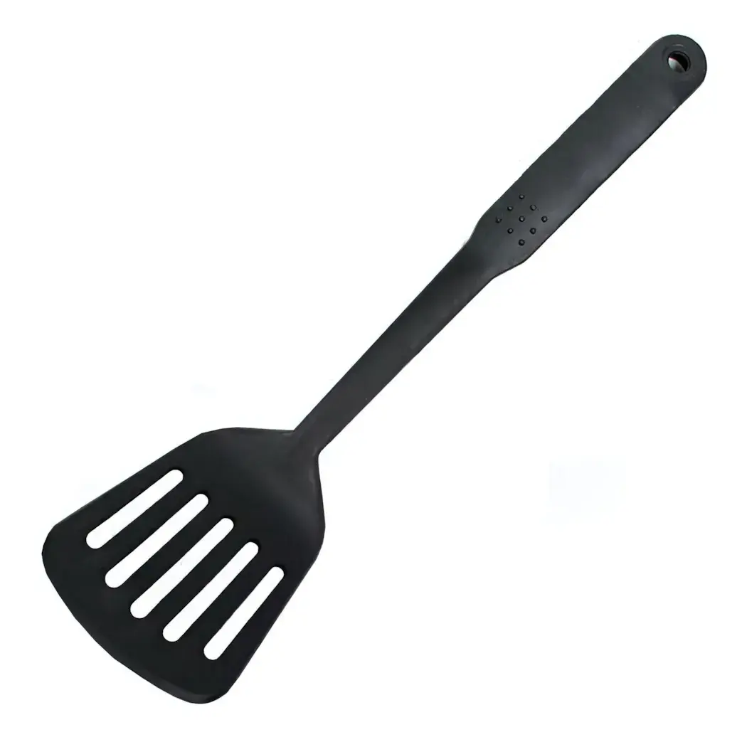 Лопатка кухонная с прорезями 31см, черная, термостойкий пластик